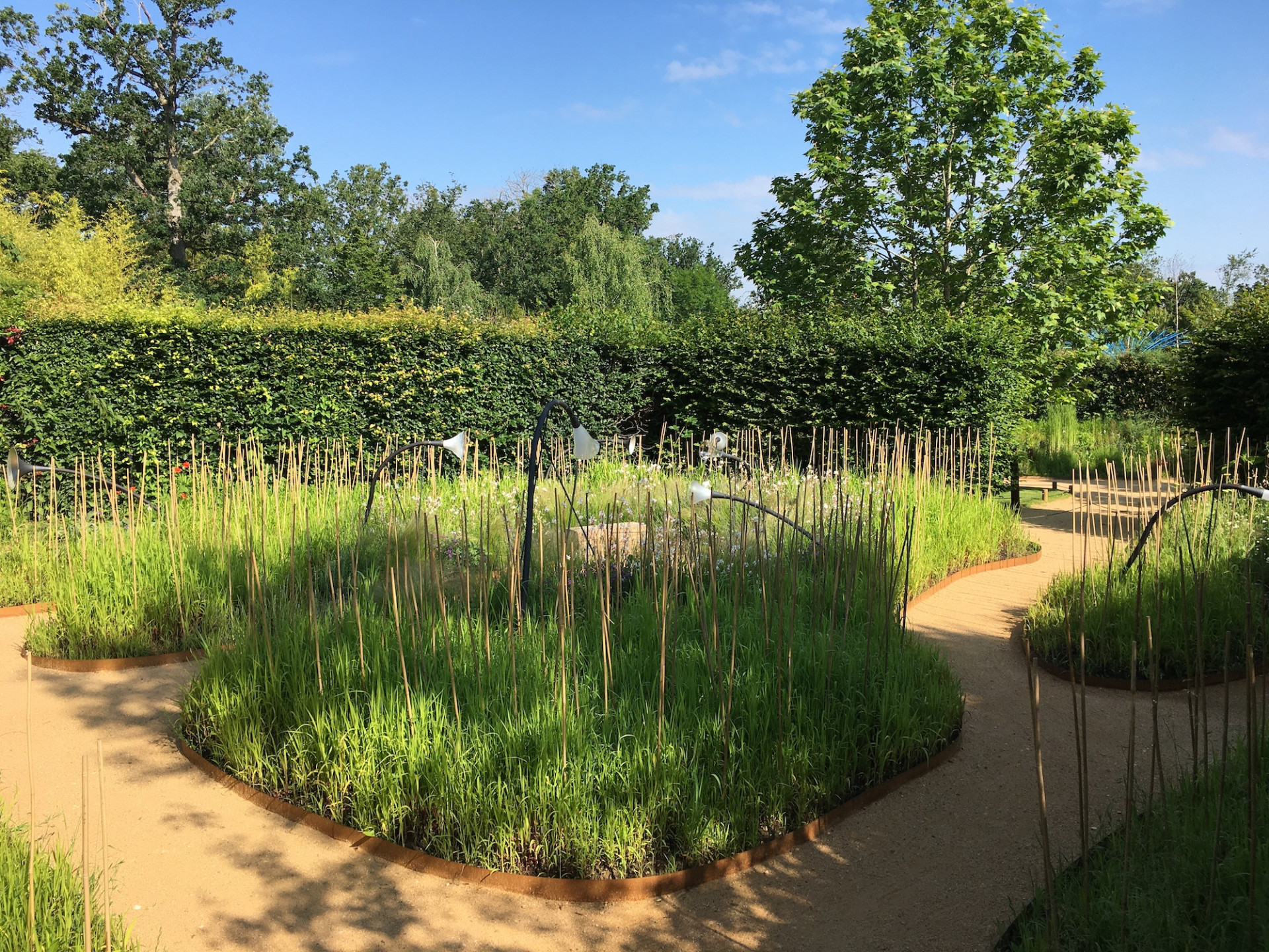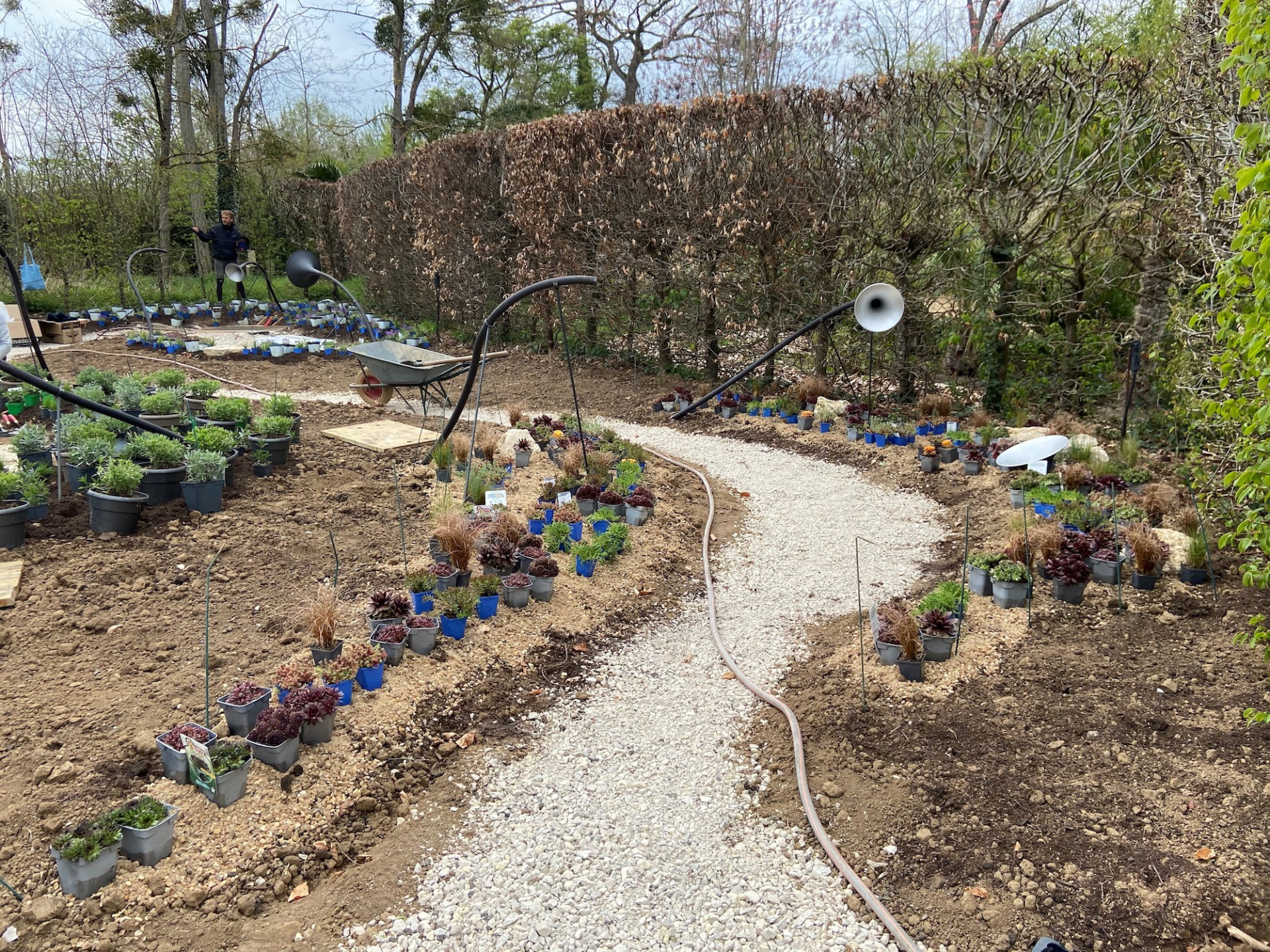 Realizace návrhu zahrady poblíž pohádkového zámku na Loiře, kam přijel celý tým studentů začátkem dubna, však nebyla procházkou růžovým sadem. „Po příjezdu do Francie jsme zjistili, že cestní síť připravená těžkou technikou neodpovídá zaslané dokumentaci, ale že je udělaná podle skic, s nimiž jsme soutěž vyhráli,“ popisuje Háta Enochová. Podle požadavků organizátorů totiž český tým projekt změnil tak, aby cestní síť byla průchozí jen jedním směrem, aby se ve slepých uličkách neshlukovali lidé. „Zatímco náš původní návrh pracoval s malými pokoji – tedy slepým ukončením cest,“ vysvětluje Háta Enochová.