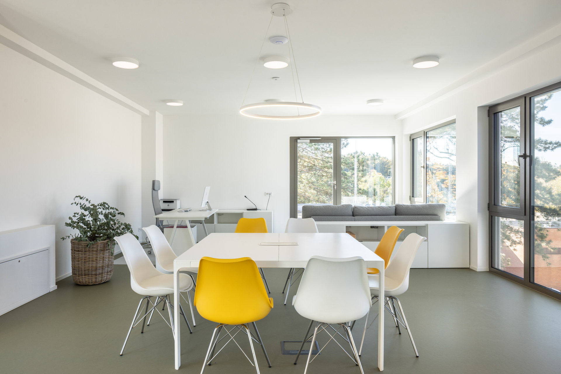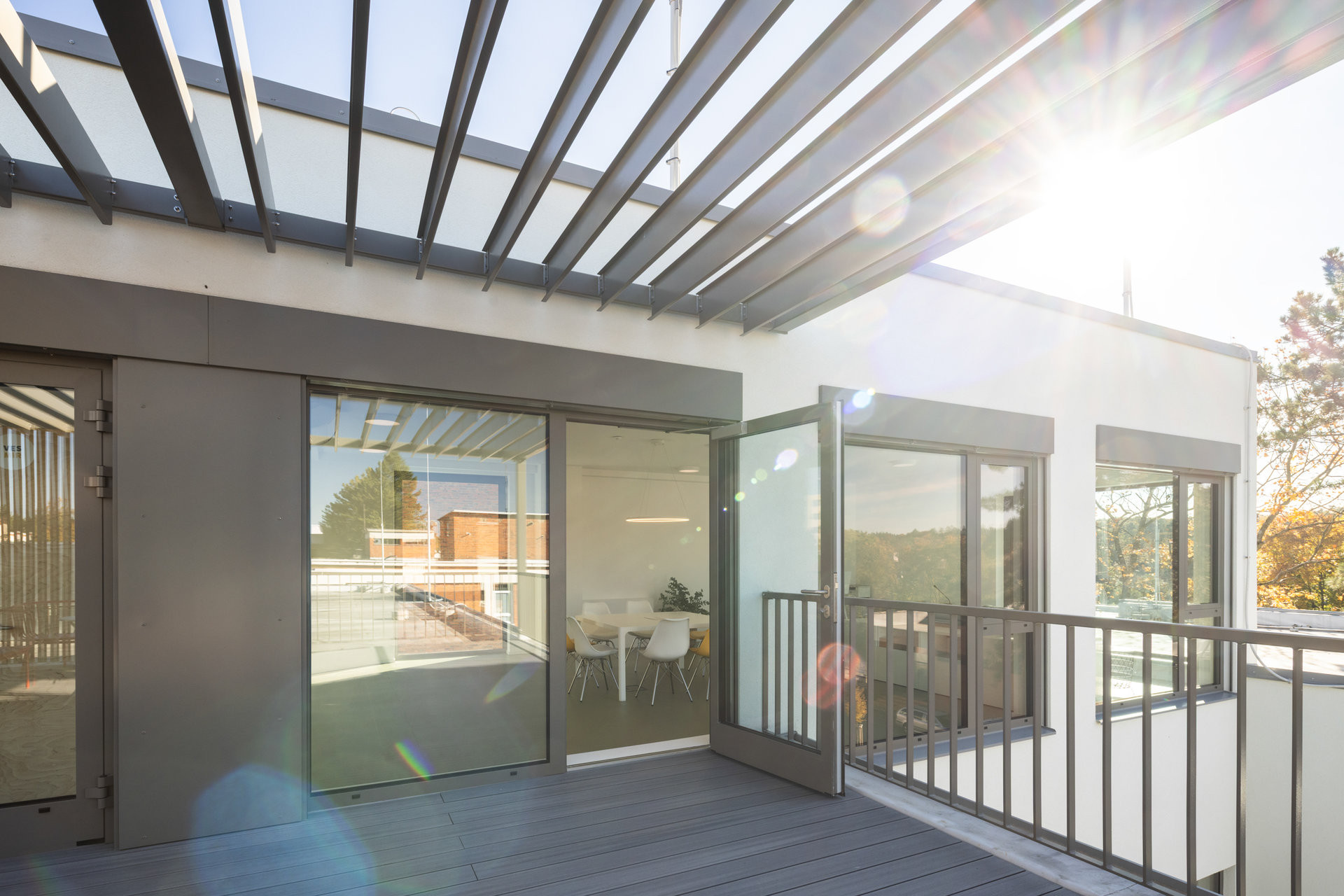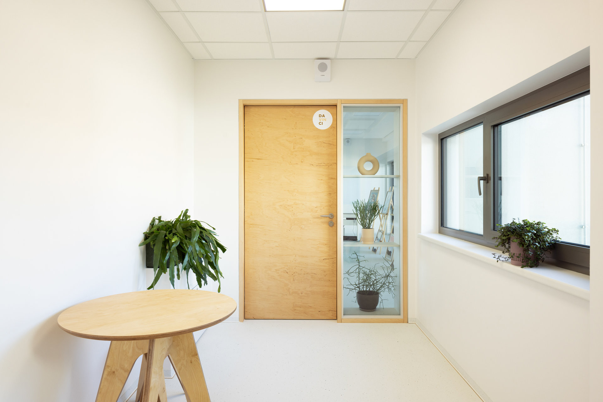 Zvenčí působí stavba střídmě, ale rozhodně ne obyčejně. Velké prosklené výkladce s venkovními žaluziemi přivádějí do interiéru dostatek denního světla a propojují děti s okolní krajinou. Střídmá paleta materiálů a barev podtrhuje přirozenou světlost prostoru.