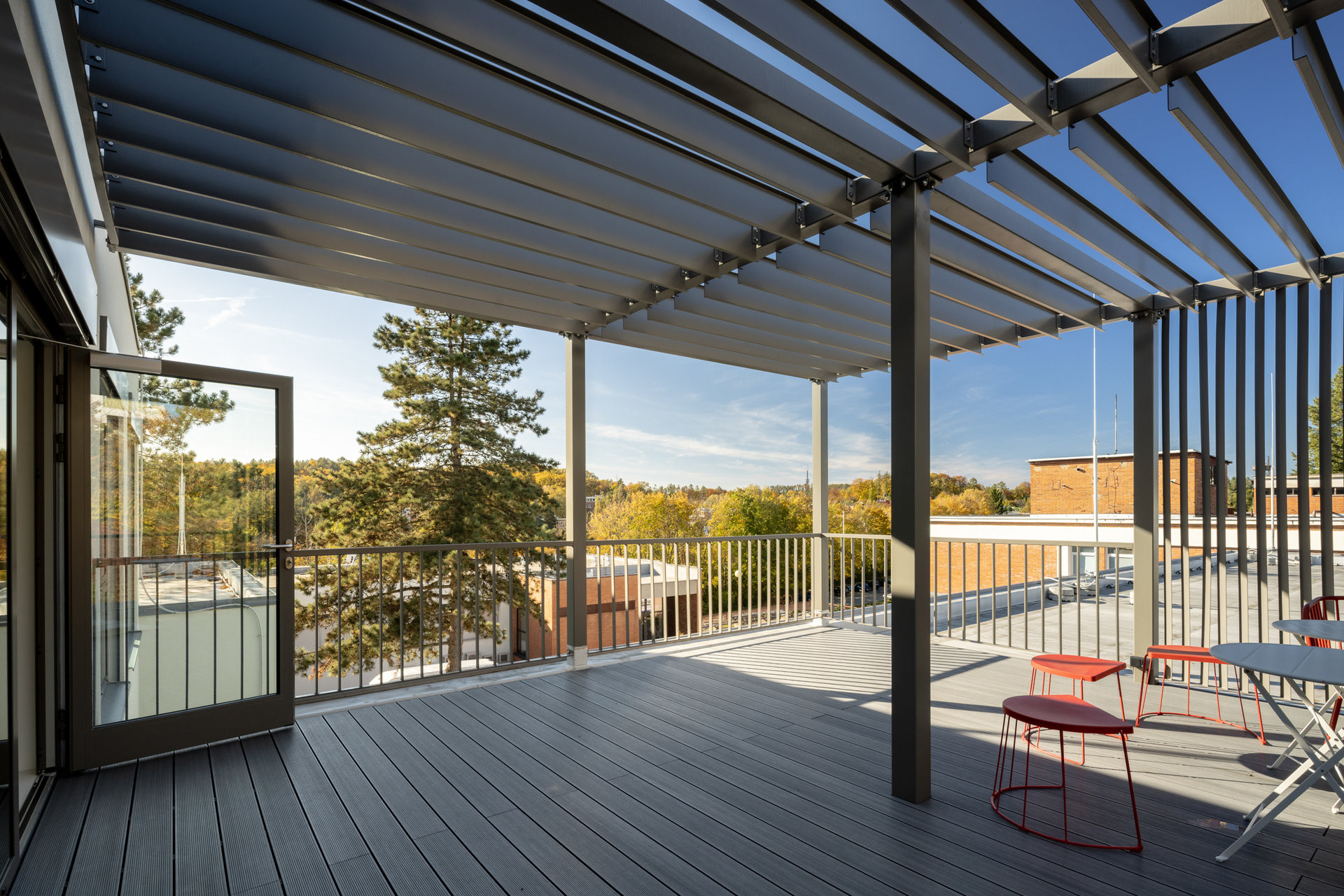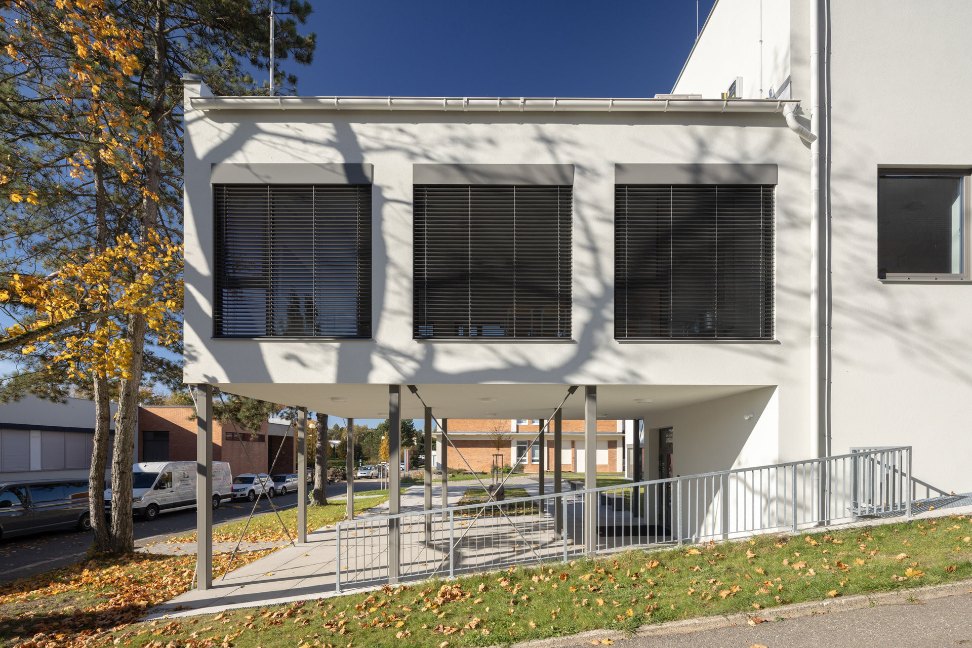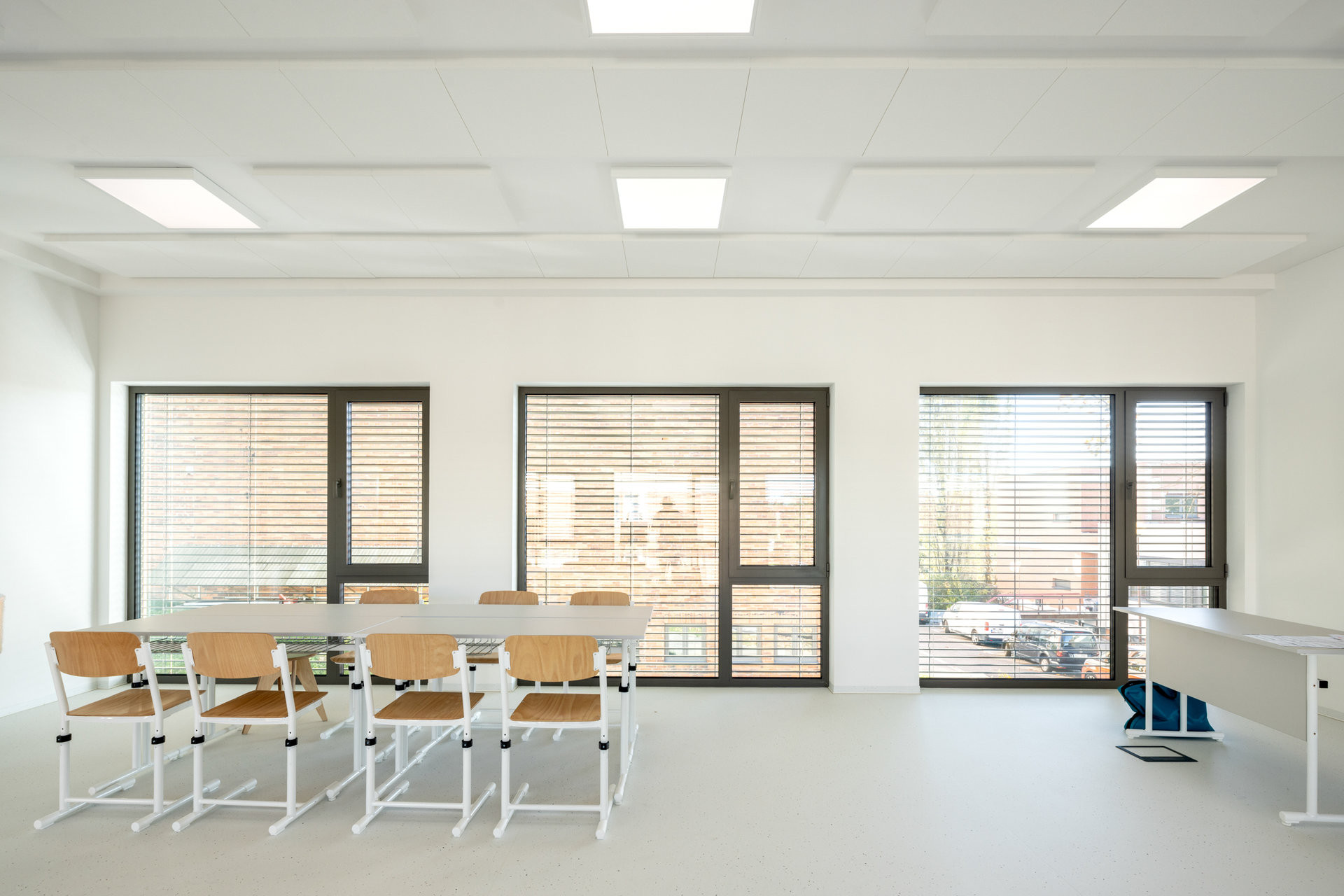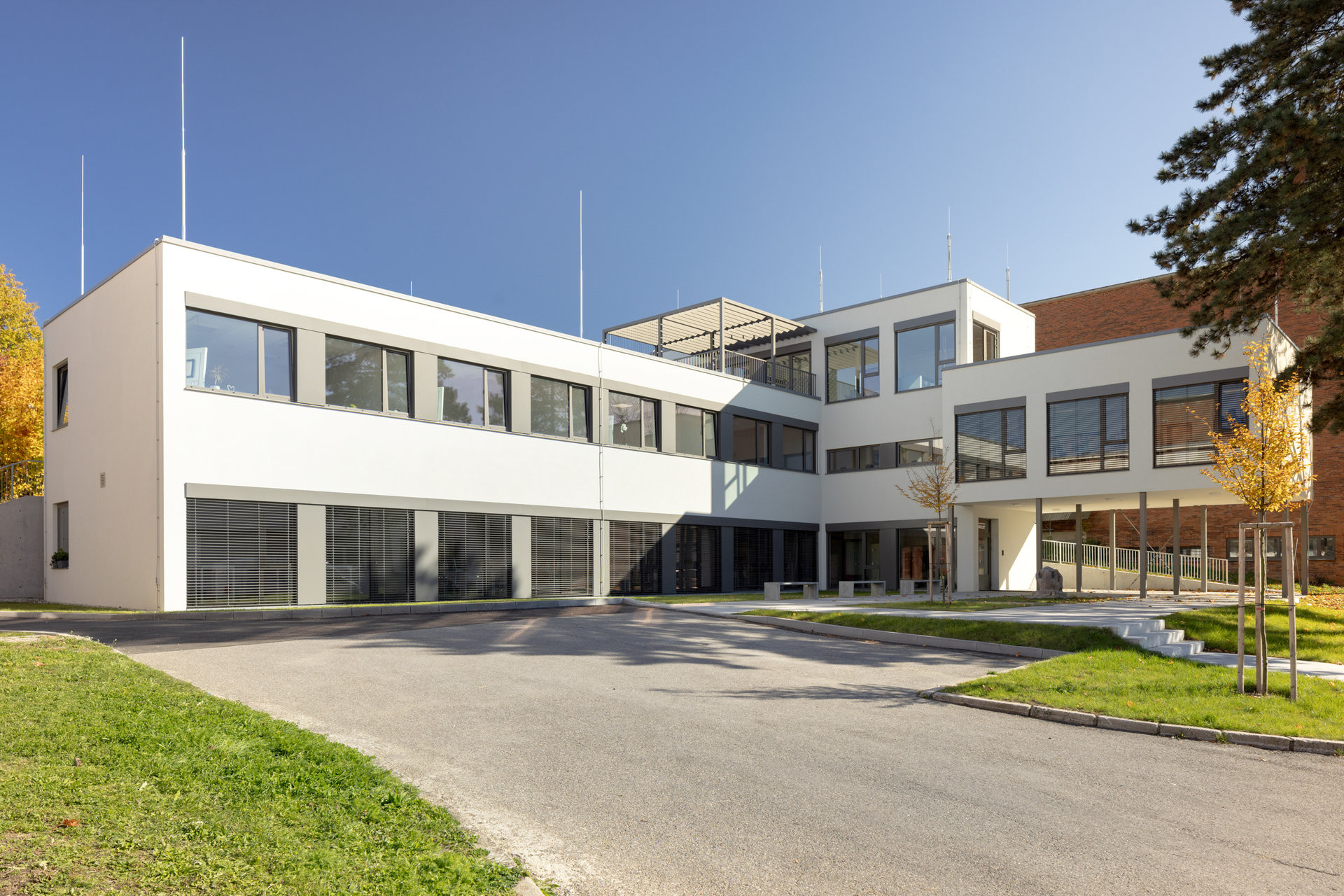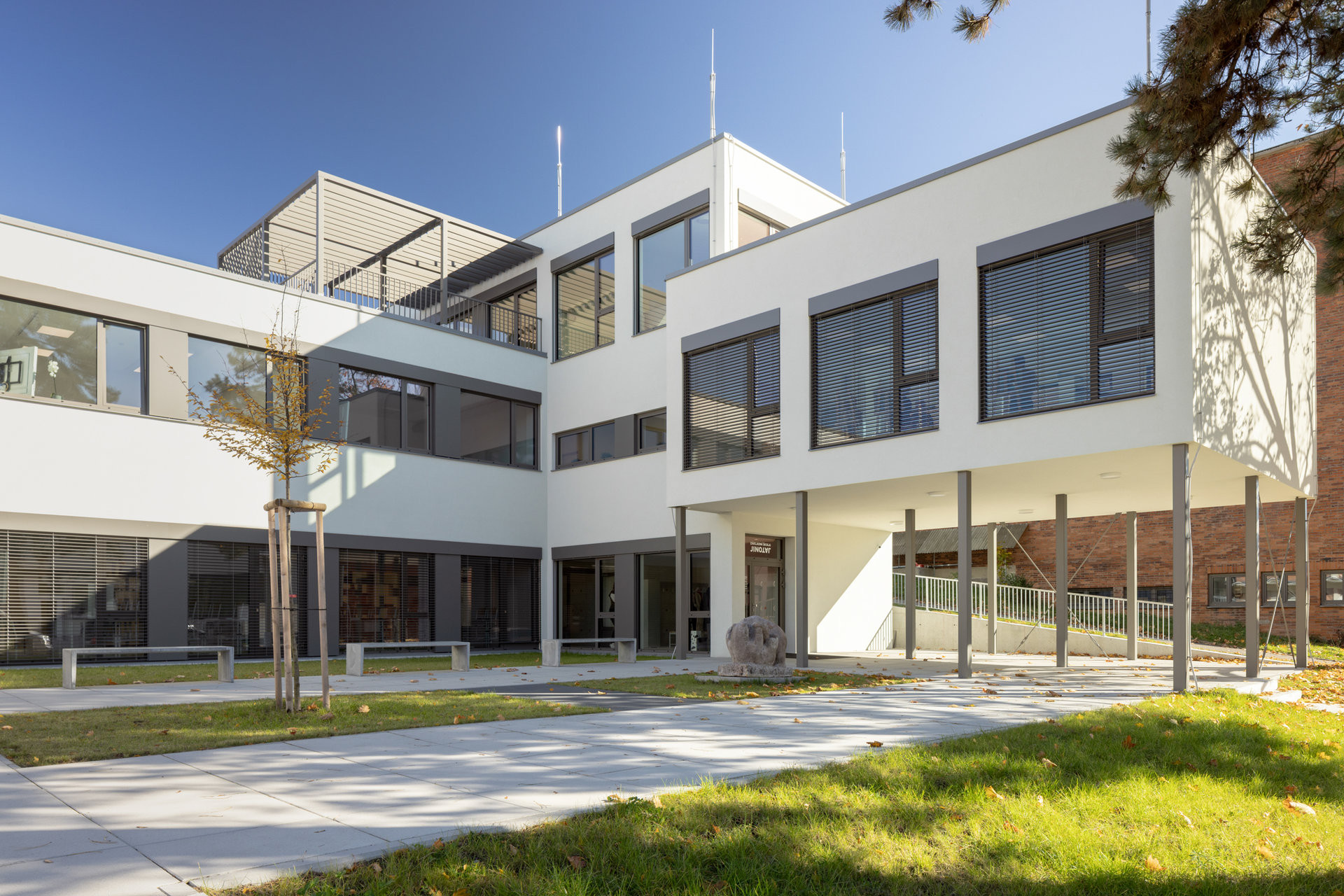Škola splňuje veškeré normy pro výuku, zároveň ale ukazuje, že i modulární systém může být esteticky působivý a architektonicky promyšlený.