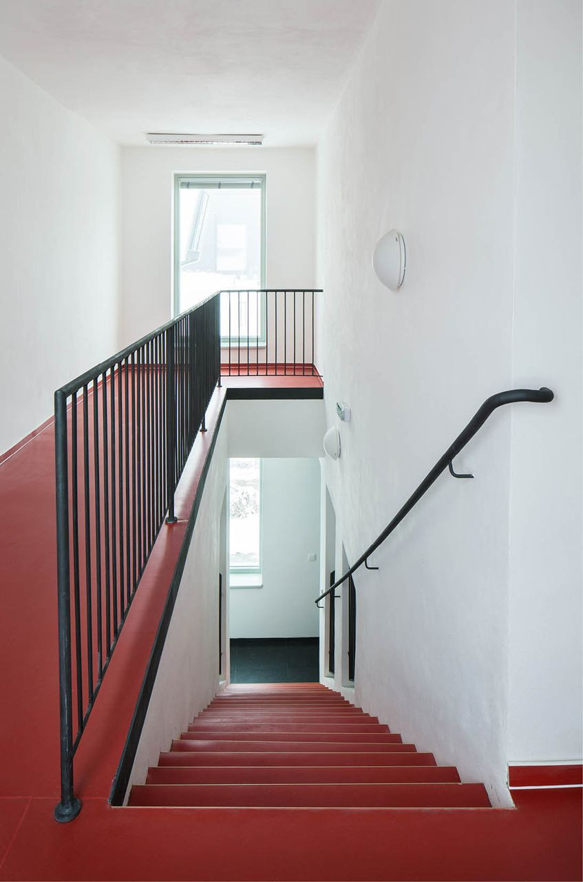 V návrhu zachováváme současnou hmotu stavby, kterou na jižní straně doplňujeme mírným zvýrazněním dvou vstupů – do základní umělecké školy a do společenského sálu. Před vstupy navrhujeme vstupní platformu, jako rozšířenou součást veřejného prostoru ulice. Mezi vstupy umisťujeme podélnou lavici s výhledem do prostoru před školou. Nepravidelně rozmístěná okna ve fasádách vycházejí ze současného stavu domu, různé rozměry oken jsou sjednoceny výraznými barevnými ustupujícími šambránami oken, které určují soudobý a jednotný charakter domu.