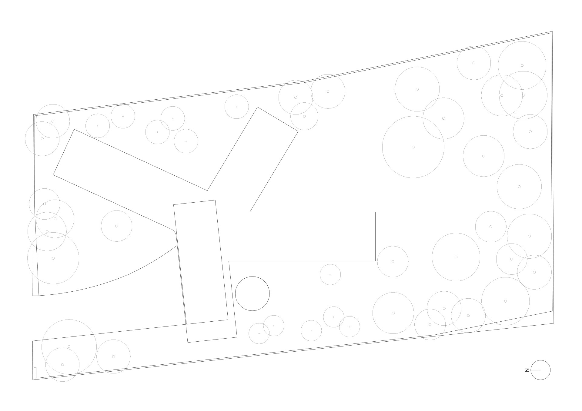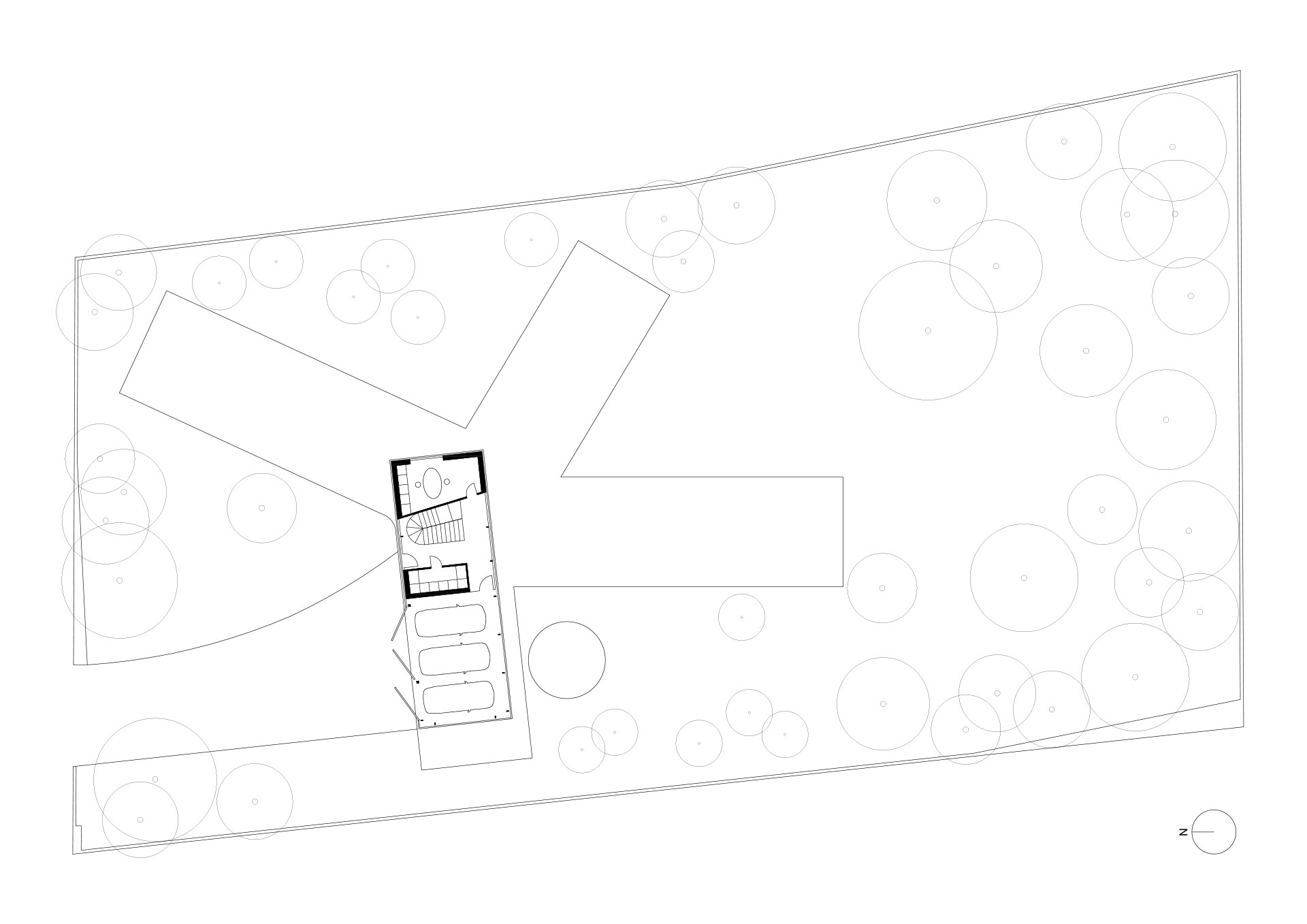 „Vyšli jsme z logiky křídlových dispozic renesančních a barokních vil. V přízemí jsou čtyři samostatná křídla, směřující do hlavní schodišťové haly,“ vysvětlují architekti Zuzana a Petr Nacházelovi. Křídla jsou rozdělená podle funkcí: kuchyně a obývací pokoj, dětské pokoje, ložnice a krytý bazén. Charakter přiléhající části zahrady tomu odpovídá: „Vstupní zahrada a hlavní společenská zahrada domu jsou osázeny stromy a postupem času se promění v park. Soukromé zahrady jsou naopak řešeny jako uzavřené atriové,“ popisují architekti.