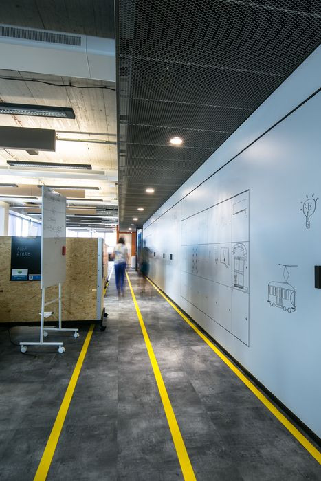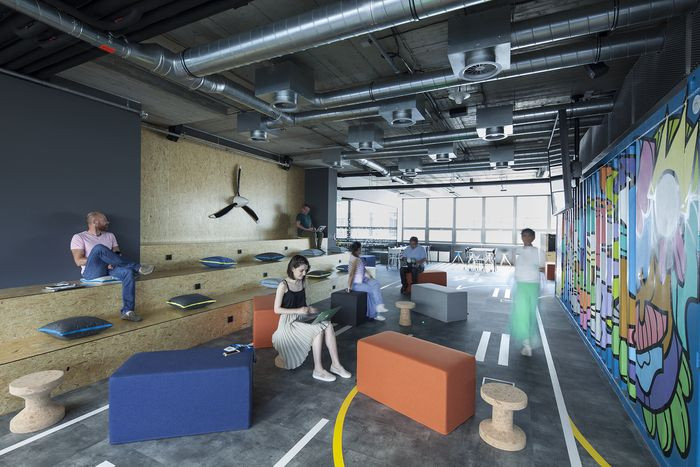 Kanceláře jsou vybaveny stolním systémem Vitra Hack Desk, který kombinuje tradiční pracovní desky s inovativním funkčním a estetickým přístupem. Každý stůl je samostatnou jednotkou, jejíž adaptabilita a možnost nastavení výšky dovoluje vývojářům pracovat vestoje, vsedě nebo dokonce v relaxační pozici vleže. V nejnižší pozici se ze stolu díky polštářům jednoduše stane pohodlný gauč. Stoly se dají rychle složit do praktických boxů a jednoduše přestěhovat.