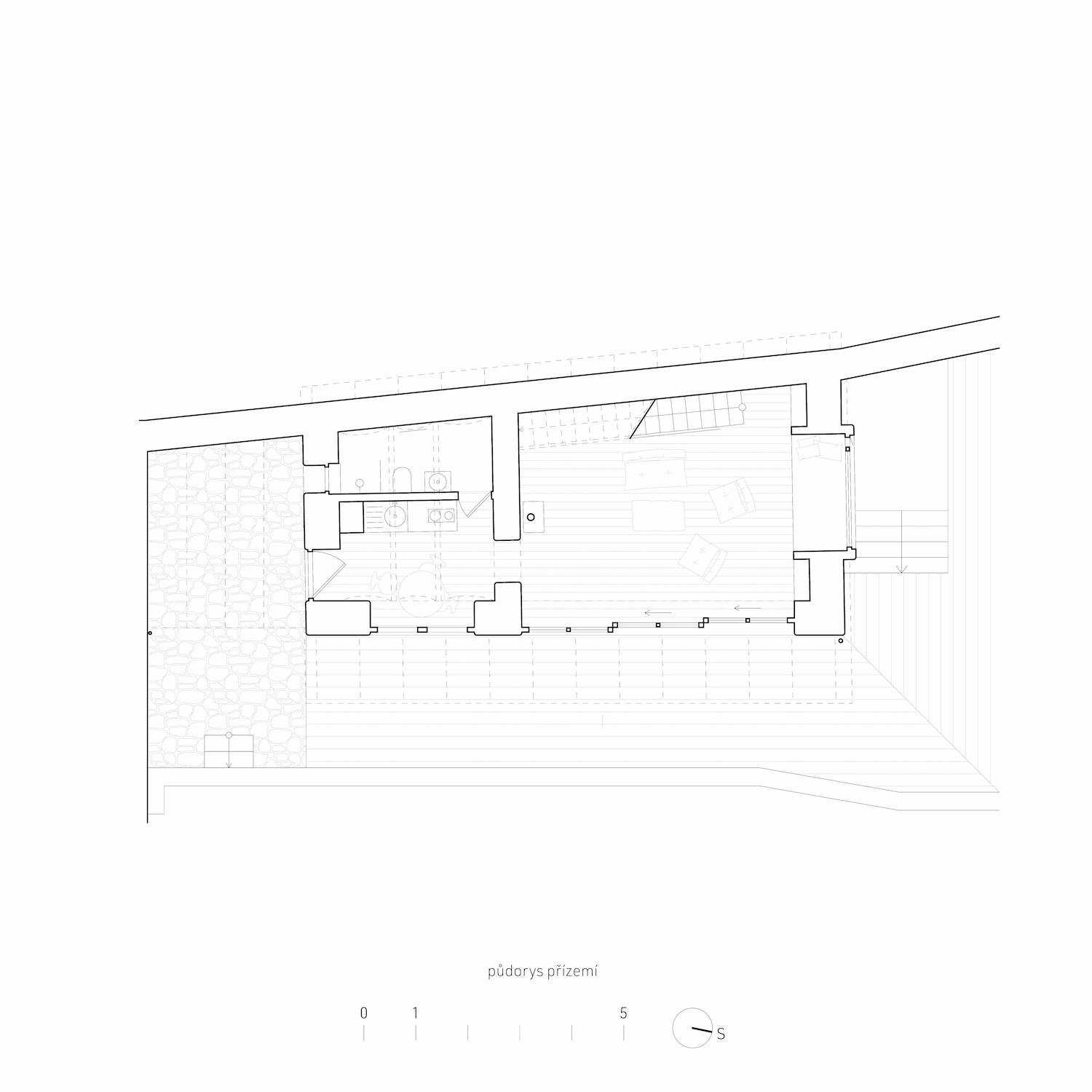 Ukrytá mezi domy městečka Vamberk na východě Čech stála po 120 let malá zapomenutá stavba, která sloužila především jako ryze utilitární sklad. Díky celkové kultivaci tohoto pustého místa ve středu města podle návrhu architekta Martina Kožnara se proměny dočkal nejen samotný domek, ale také dvorek s jedinečným výhledem na ruinu bývalé likérky. Domek v interiéru nabízí jeden společný prostor otevřený až do pultové střechy, která byla navíc ještě zvýšena o tři čtvrtě metru, tak aby se mohl vnitřní prostor pořádně nadechnout. Kožnar na projektu pracoval pro svého kamaráda, který nyní objekt využívá k víkendovým pobytům.