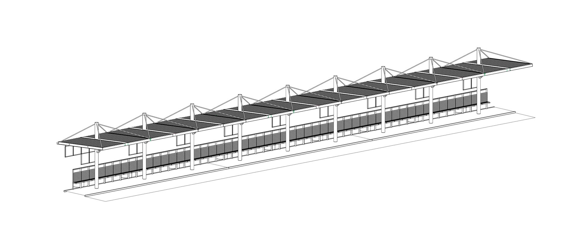 Architekti věnovali péči také betonové dlažbě i poloze dilatačních spár, které navazují na osy nosných sloupů. Autobusový záliv byl zhotoven z prefabrikovaných železobetonových dílů.