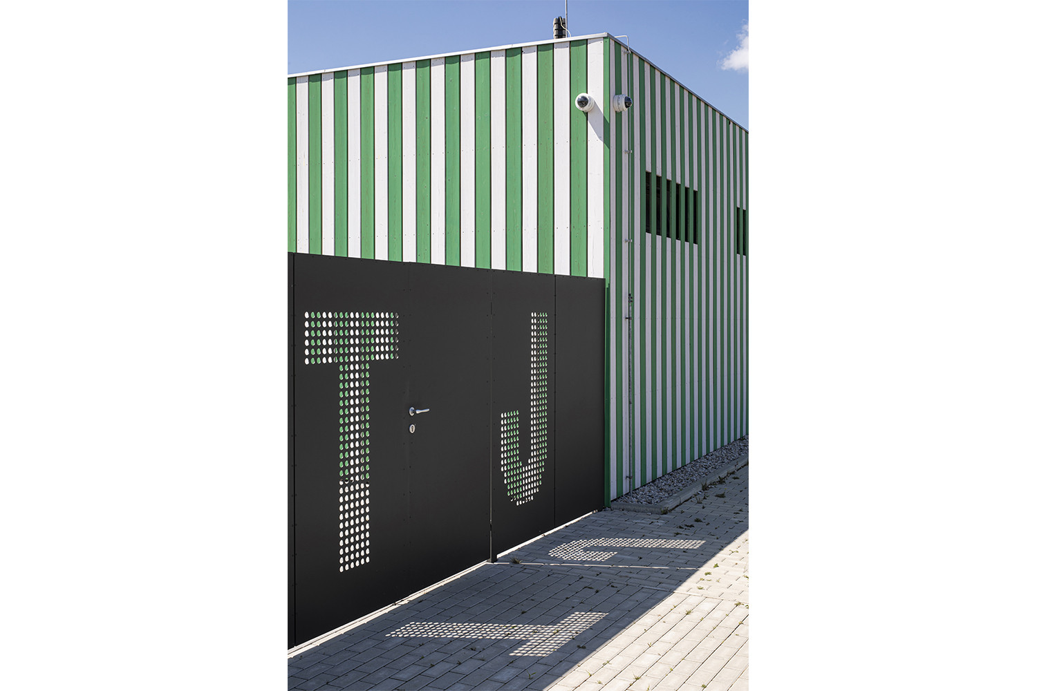 Na dříve zanedbaném území okrajové pražské čtvrti vznikl nový sportovně-rekreační areál, jehož součástí je také nápaditě řešený objekt zázemí v klubových barvách a s výrazným nápisem po obvodu.