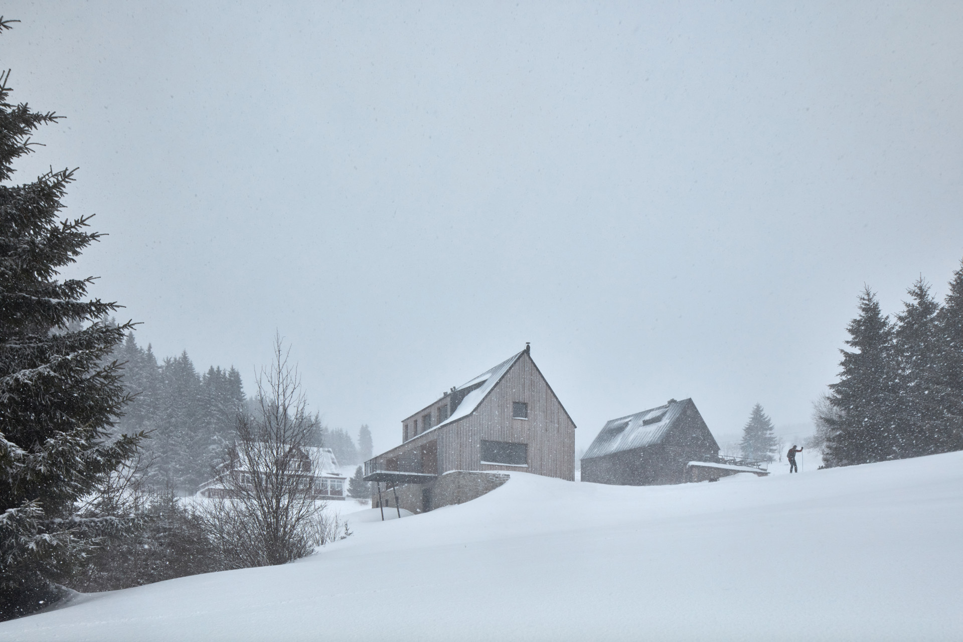 Ateliér A1 architects se na jemné fúzování starého s novým specializuje. A je to vidět i na této chalupě. Zachovali siluetu, ale přidali nové okenní otvory, které umožní výhledy; ačkoliv pravidla KRNAP velká prosklení omezují, tady se je povedlo obhájit. „Proces byl relativně hladký, myslím, že v KRNAP se už se současnou architekturou docela sžili,“ myslí si David Maštálka.