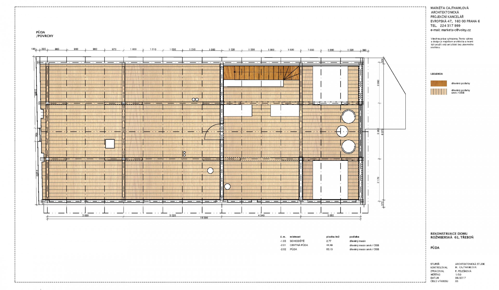 Rekonstrukce domu v Třeboni, Markéta Cajthamlová, Petra Pelešková, půda povrchy