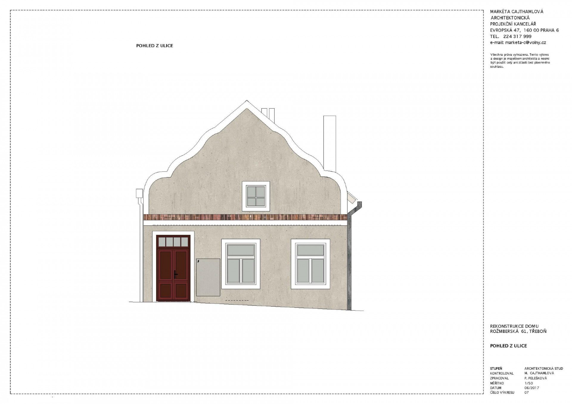 Rekonstrukce domu v Třeboni, Markéta Cajthamlová, Petra Pelešková, pohled z ulice