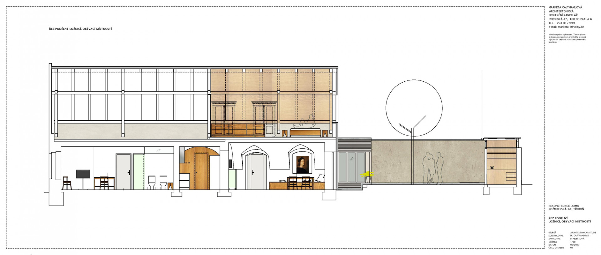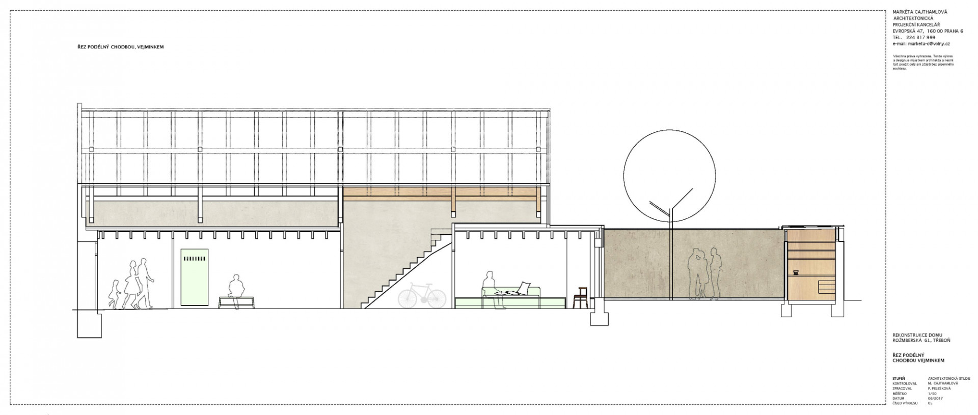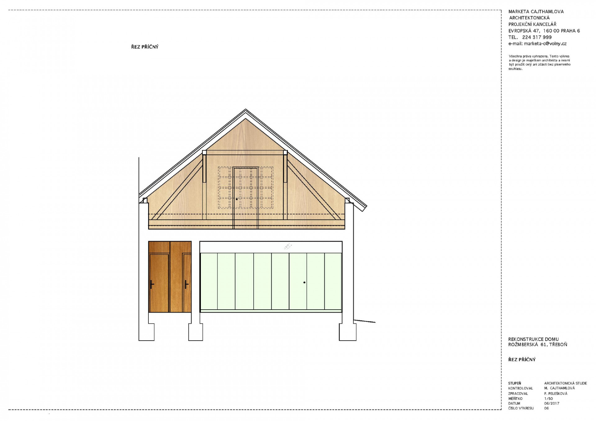 Rekonstrukce domu v Třeboni, Markéta Cajthamlová, Petra Pelešková, řez příčný
