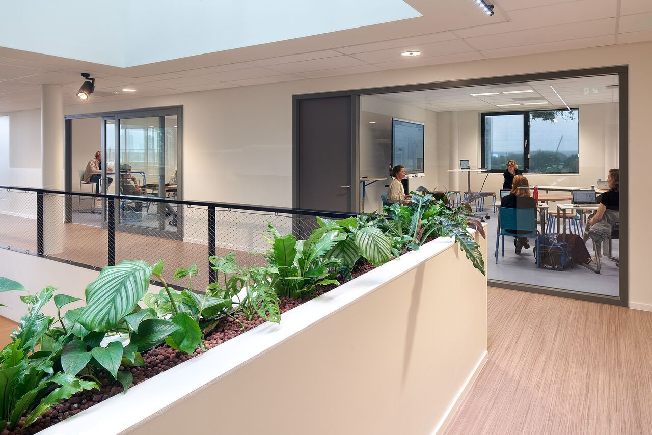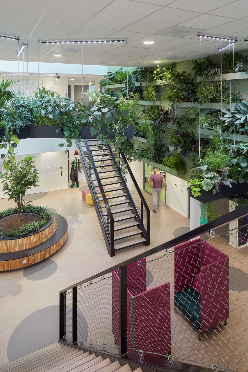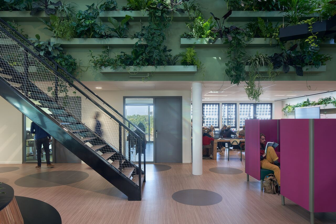 „Zelené plíce s různými druhy zelených stěn, rostlin a stromů procházejí budovou jako krajinou, od vchodu až po střechu. Zeleň stimuluje smysly a jako součást živé laboratoře má také vzdělávací hodnotu; studenti v Almere provádějí výzkum v oblasti zásobování potravinami ve městech a zdravého životního stylu v zeleném městě a také toho, jak zeleň ve škole přispívá k výkonu ve výuce,“ popisují BDG Architecten.