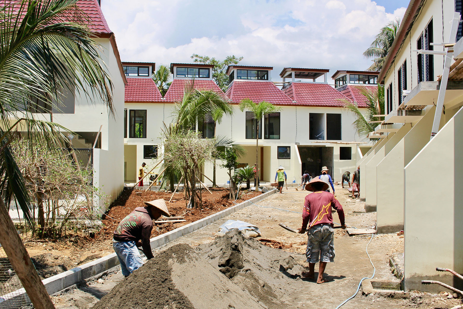 Také průběh stavby byl neočekávaně lehký. Investorům se návrh hned od začátku líbil. Odjeli do Indonésie projekt představit na stavební úřad a po měsíci jsme dostali stavební povolení na celý projekt. Když mi to klienti volali, nemohl jsem tomu uvěřit, protože jsem zvyklý, že v českém prostředí dostat stavební povolení trvá několik let a množství subjektů, kteří se musí k projektu vyjádřit, nemá konce. Já jsem investorům projekt prezentoval první týden v září, koncem října jsme dostali stavební povolení a v prosinci toho roku se začaly kopat základy pro první dům.
