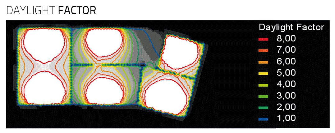 Dispozice domu umožňuje přivádění jižního slunce do obytných místností přes skleněné plochy, které poskytují přístup na terasu a výhled do okolí. Stavbu tohoto systému tak lze zařadit mezi nízkoenergetickou až pasivní.