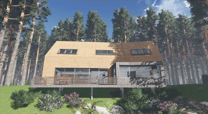 Záměrem projektu je vytvořit příjemné bydlení umístěné daleko od rušného prostředí městské zástavby. Dům kombinuje lepené lamelové dřevo s čistě přírodními materiály a přizpůsobuje se tvaru terénu.