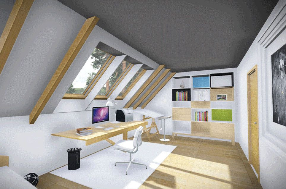 V jednotlivých místnostech je osazena trojice oken pomocí kombi lemování s meziokenní krokví.