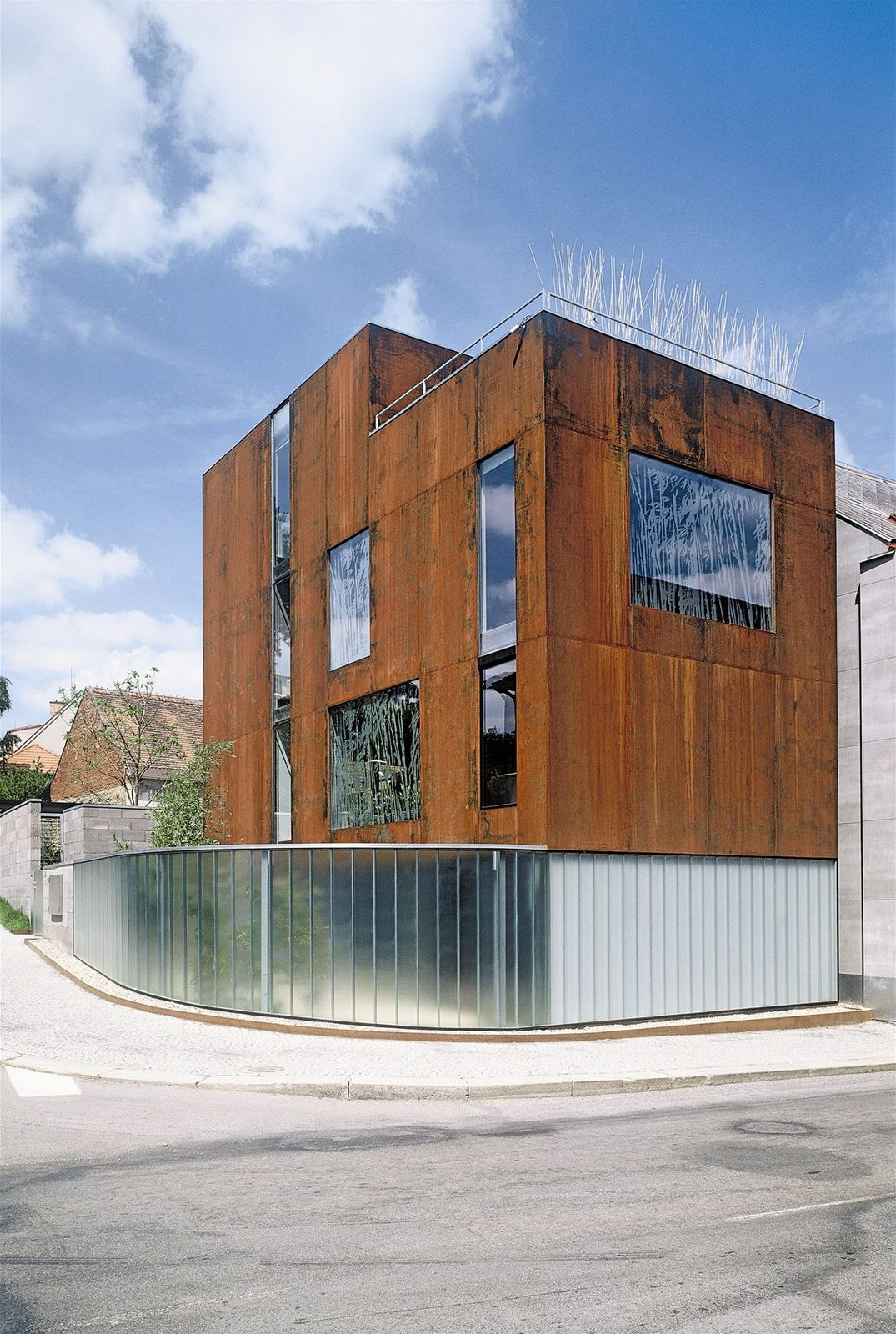 Na první pohled se Plecháč za dvanáct let příliš nezměnil – fasáda z cortenových plechů stále provokuje kolemjdoucí svým řezavým výrazem (byť už o něco tmavším), jen stromy v zahradě nápadně vyrostly a schovaly celou západní stranu domu. V desetitisícovém Humpolci způsobila čtyřpodlažní stavba ve své době zajisté velké pozdvižení. Zrezivělý plech se má přece hned vyhodit anebo přebrousit a natřít – a ne z něj udělat nejvýraznější prvek domu. Luděk Rýzner musel v očích sousedů vypadat jako naprostý šílenec (k němu ostatně architekti nemají v představách veřejnosti daleko). Není se ale čemu divit – corten vyvolává úsměšky či rovnou odsuzující kritiku i dnes, natož pak v období doznívajících karamelových let devadesátých.