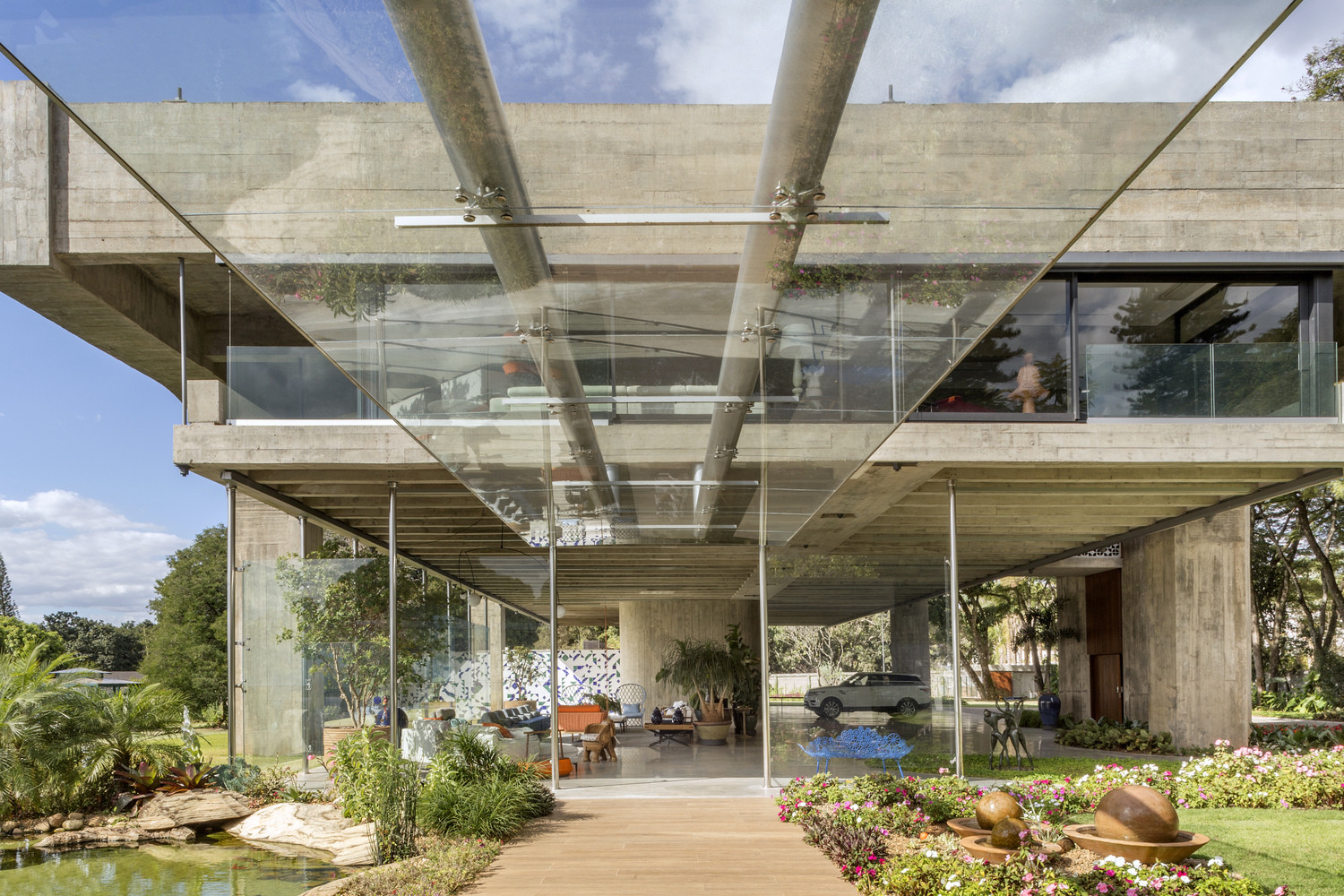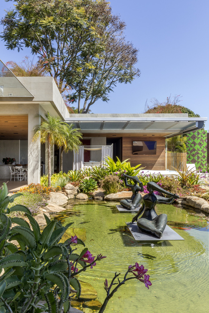 Podobně jako u dalších projektů architekta Filgueirase hraje u zmiňované soukromé rezidence v Brasílii hlavní roli odvážná železobetonová konstrukce stojící na čtyřech nohách, pilířích. Díky tomu se doslova vznáší nad krásným svažitým pozemkem, který obklopují vzrostlé stromy a tropická vegetace.