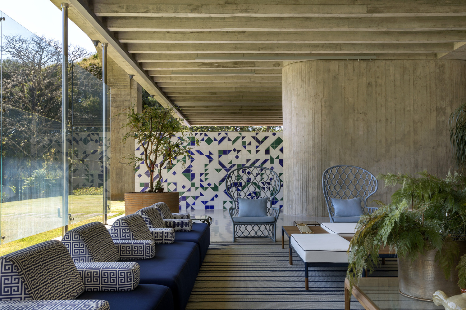 Zrekonstruovanou brutalistní rezidenci v Brasílii zdobí velká umělecká mozaika