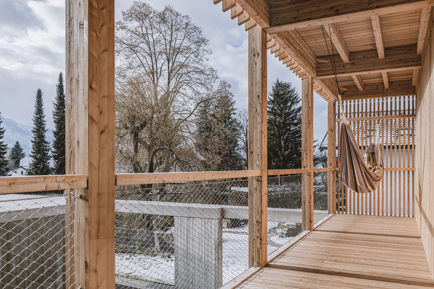Dunkelschwarz je mladé architektonické studio sídlící v rakouském Salzburku, které má za sebou zatím jen několik málo realizací. Tou nejčerstvější je rodinný dům v pětitisícové obci Elsbeten na jihovýchodním předměstí Salzburku. Stavba z přiznaného dřeva a betonu je součástí poklidné rezidenční zástavby rodinných domů. Architekti dům pojali kontextuálně a při pohledu zvenčí jej přizpůsobili okolním objektům – má pravoúhlý půdorys, strmou sedlovou střechu a na fasádách dřevo.