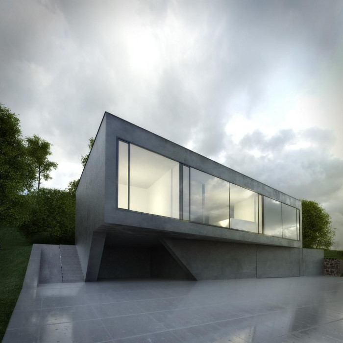 Betonový rozříznutý dům