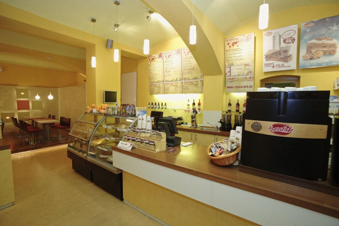 Kaviareň v parku - Slnko v tieni vysokých stromov