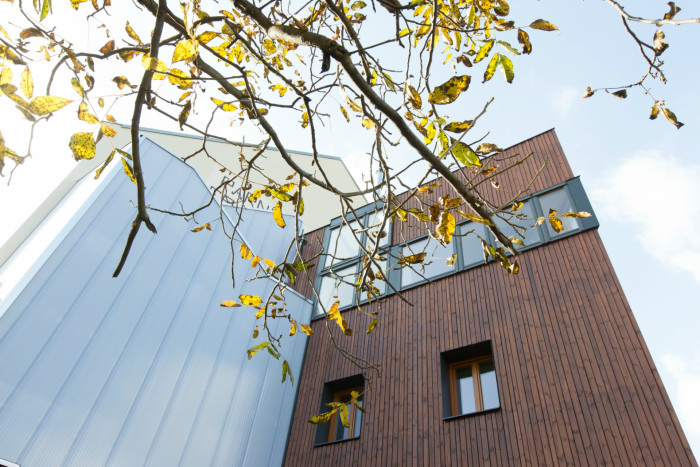 Atypický rodinný dům v Praze nabízí po rekonstrukci od architektky Hany Seho střešní zahradu i několikapatrovou knihovnu