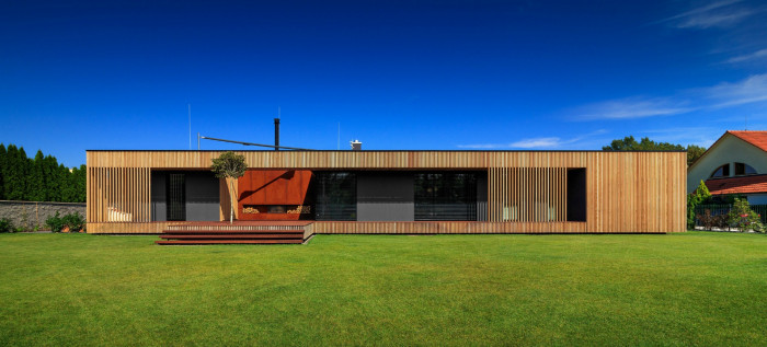 ARCHITEKTI mikulaj & mikulajova navrhli atriový rodinný dům s venkovní kuchyní a velkou terasou