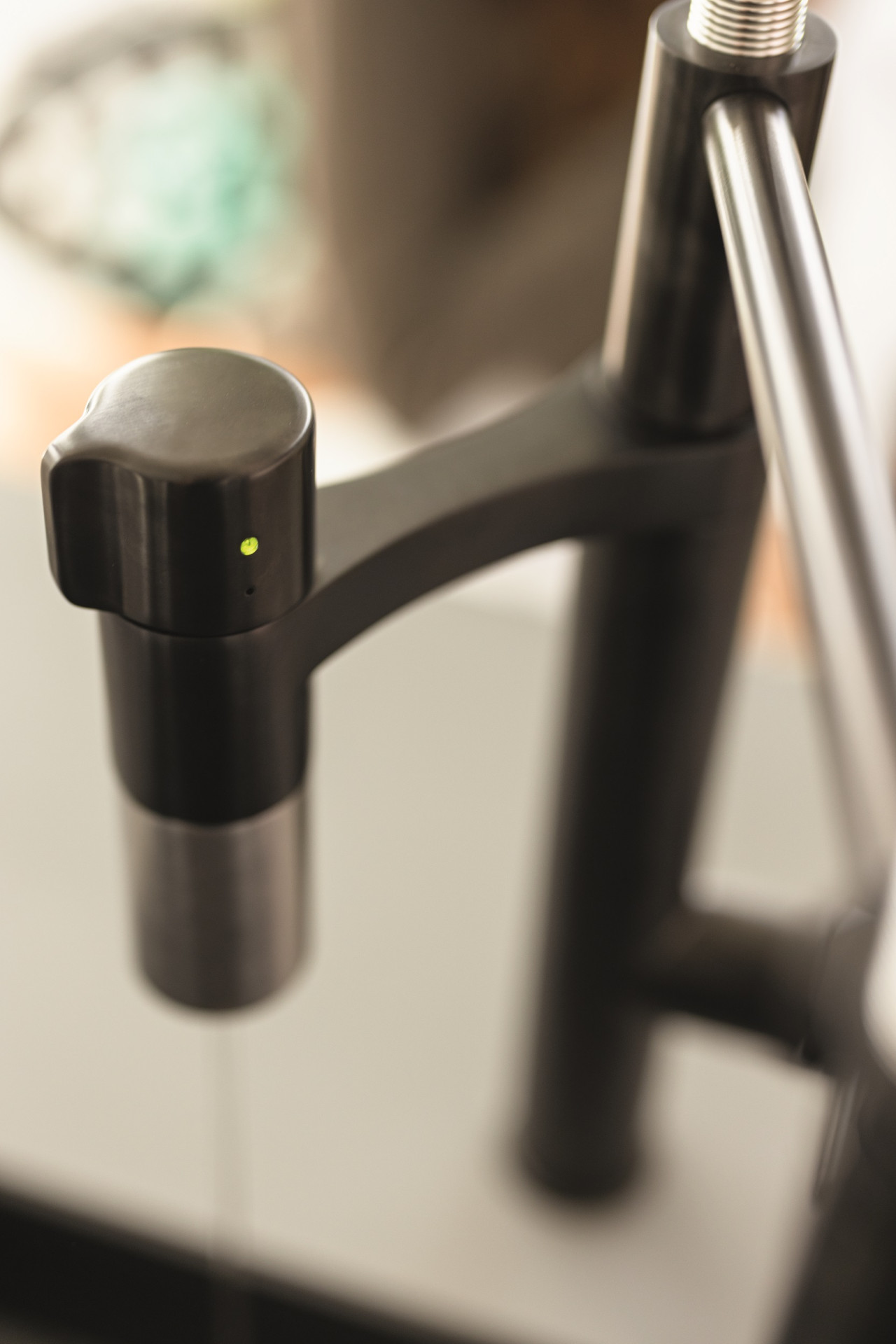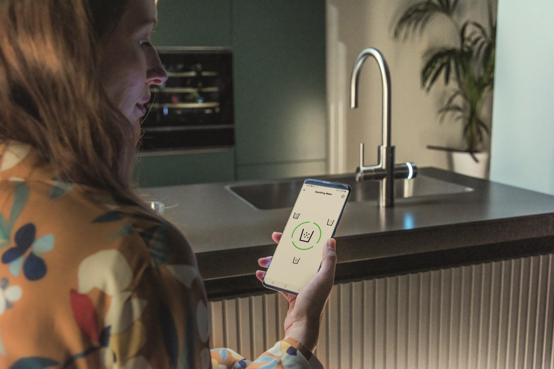Aktivace jednotlivých režimů probíhá jednoduše elektronickým knoflíkem Mythos Water Hub, na kterém dle barevné LED indikace snadno rozlišíte a zvolíte požadovaný typ vody. Díky aplikaci, která se s baterií propojí přes Bluetooth, si navíc můžete indivuduálně nastavit úroveň průtoku, nasycení vody CO2 a teplotu vroucí vody. Aplikace rovněž umožňuje aktivovat zámek, který zabrání dětem spustit speciální funkce. „V aplikaci můžete také zkontrolovat stav systému a objednat spotřební materiál,“ dodává Franke.
