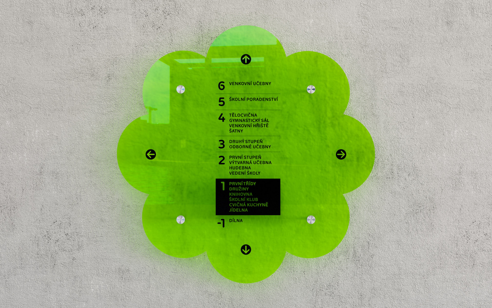Praha 7 chystá výstavbu nové školy v Holešovicích – připravila architektonickou soutěž, v níž zvítězil návrh týmu pod vedením Josefa Choce (ve složení Filip Rašek, Jonáš Mikšovský, Natálie Kristýnková, Barbora Lopraisová a Emily Hillová). Architekti a architektky zatím pracují na projektu, ale už se ví, jaké značky a symboly budou uvnitř. „Část z nich bude na svítivě zeleném plexiskle,“ těší se Klára Kvízová.