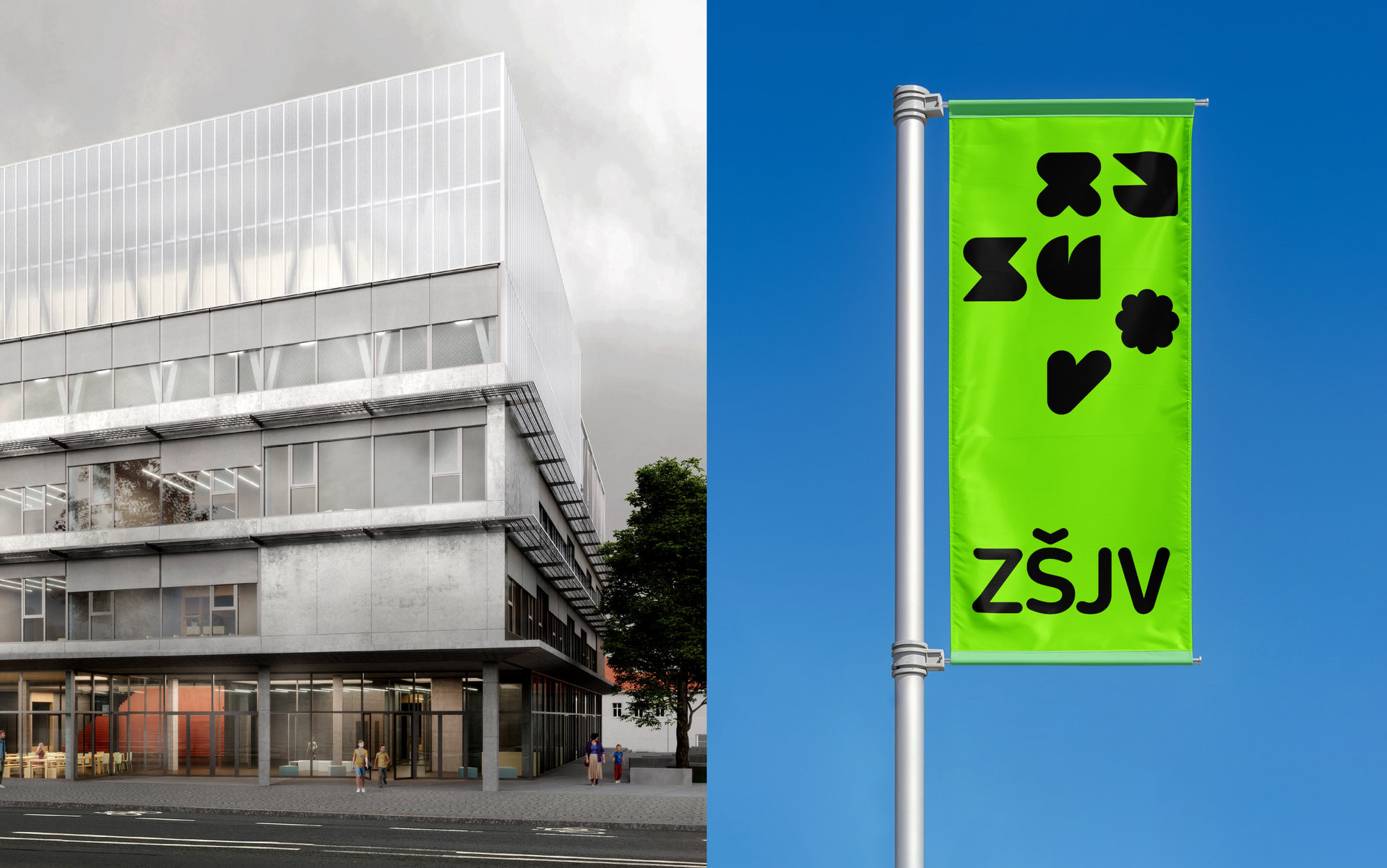 Budova ZŠ Vodňanského bude jednoduchá stavba z betonu, a grafičtí designéři a je v plánu, že grafika je doslova rozsvítí, jako se to povedlo například Petru Babákovi v Národní technické knihovně.