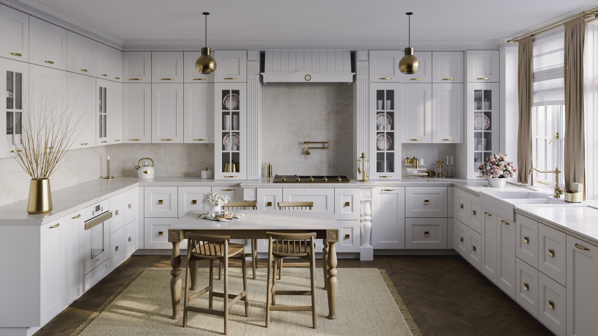 V plné kráse vyniká Country Rose díky smetanově bílému základu s bronzovým žilkováním. Perfektně ladí v kombinaci s romantickým interiérem, který zdobí vintage prvky. Kontrast mezi sofistikovaností tohoto dekoru a rustikální kuchyňskou linkou s úchytkami z leštěné mosazi dodává prostoru bohatý charakter a osobitý šarm.