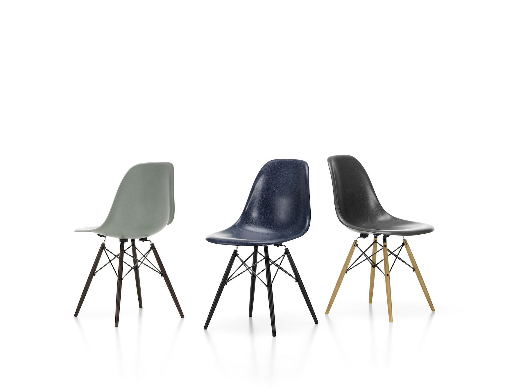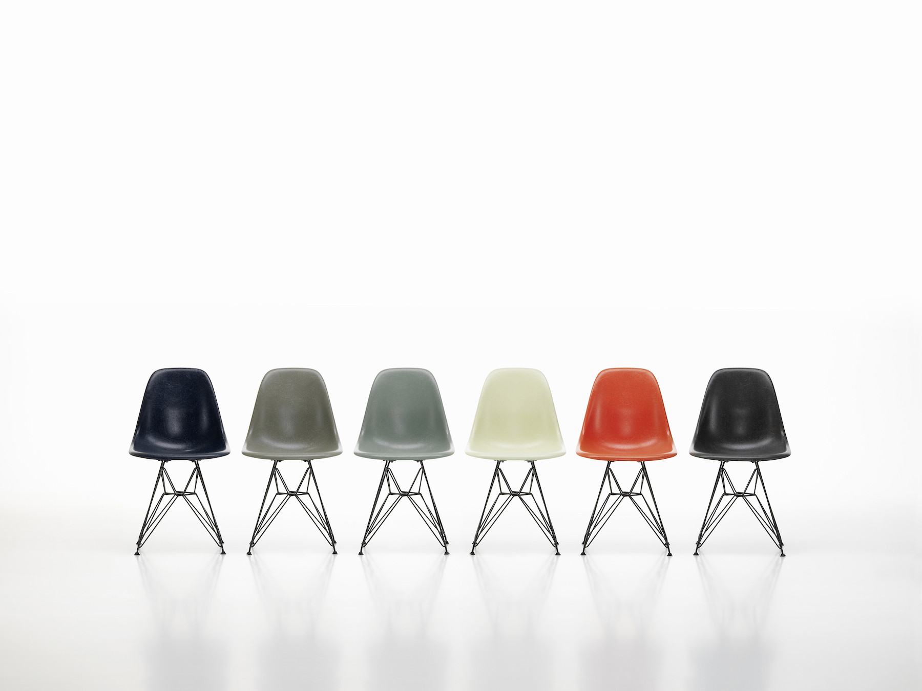 „Vitra v roce 2018 znovu představuje Fibreglass Chairs od Charlese a Ray Eamesových. Při jejich výrobě používá zcela nový postup. Židle jsou v nabídce v šesti původních barvách: šedá sloní kůže, pergamenová, zelená mořská pěna, přírodní okr, červený pomeranč a námořnická modrá. Sklolaminátové sedáky jsou příjemné na pohled a to se dnes velmi cení. Kouzlo sklolaminátu spočívá v jeho nepravidelném povrchu – díky dobře viditelným vláknům vypadá skoro jako přírodní materiál,“ vysvětluje Eckart Maise, šéfdesignér z Vitry. Nové Eames Fiberglass Side Chairs se dají kombinovat s dřevěnou, čtyřnohou nebo eiffelovkovou podnoží.