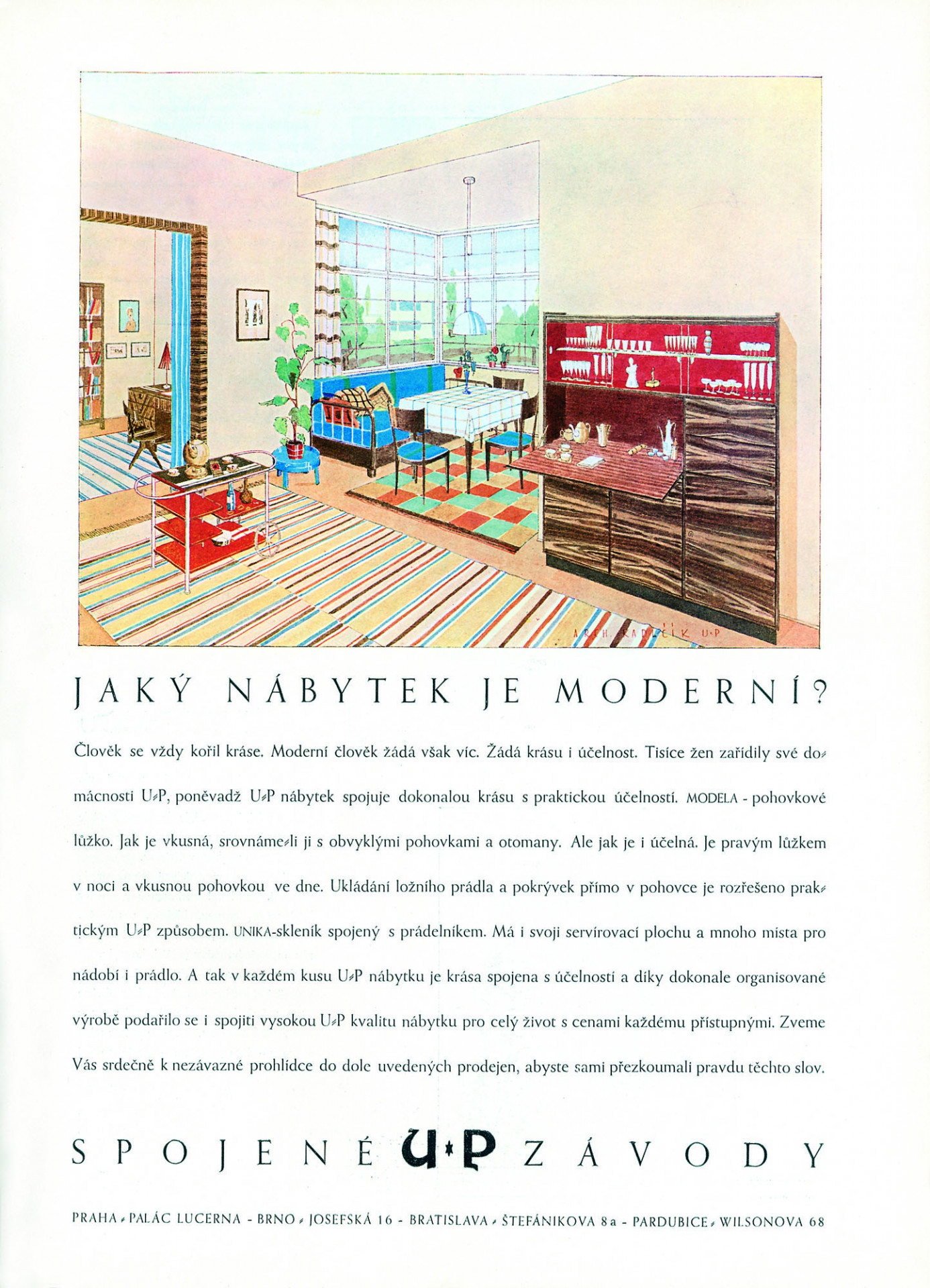 Pod vedením Vladimíra Marečka vyráběli Spojené UP závody také parkety, dveře a dveřní zárubně či čistící prostředky vyhlášené vysokou kvalitou. Právě díky komplexnosti, kvalitě a vynikajícím tvůrčím osobnostem značky skrývající se za bíle psanou zkratkou UP v červeném kolečku, se i dnes její výrobky těší sběratelskému i zcela běžnému nákupnímu zájmu. Nábytek je to totiž nadčasový, praktický a z kvalitních materiálů. Jedno je jisté – ceny zachovalých originálů za poslední dekádu strmě vyrostly. Proto jestli ještě doma nemáte svého Halabalu, napravte to co nejrychleji. A pokud vás téma zaujalo, doporučujeme vám k přečtení knížku Jindřich Halabala a Spojené uměleckoprůmyslové závody v Brně, která vyšla v roce 2018 u nakladatelství Grada. Najdete v ní kompletní katalog produktů, které Halabala pro závody vytvořil, dobové propagační materiály i další informace o poválečném portfoliu a dalších osudech této unikátní a v mnoha směrech vizionářské nábytkové firmy.