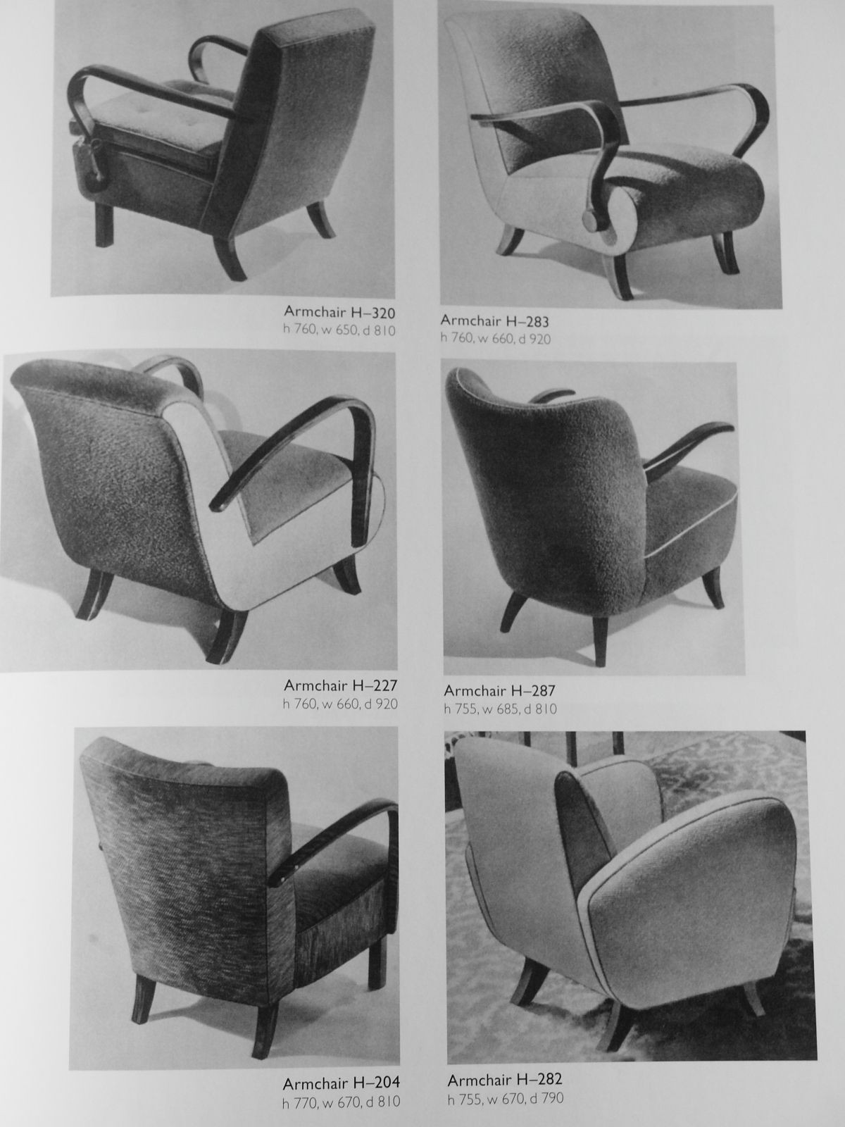 Co se týče nábytku z ohýbaného dřeva, patří mezi nejúspěšnější a designérsky nadčasové modely Jindřicha Halabaly bezesporu křesla s obloukovitými područkami, která se vyráběla v 5 variantách. Jako pevné H-269 přezdívané lyže kvůli dlouhým podpěrám sahajícím hluboko pod sedák, se třemi způsoby nastavení opěradla a rozkládací pod názvem Siesta. Podobně populární je i jeho kávový stolek H-259, který se v Československu zažil pod pojmem „pavouk“ nebo sada hnízdových stolků H-50.