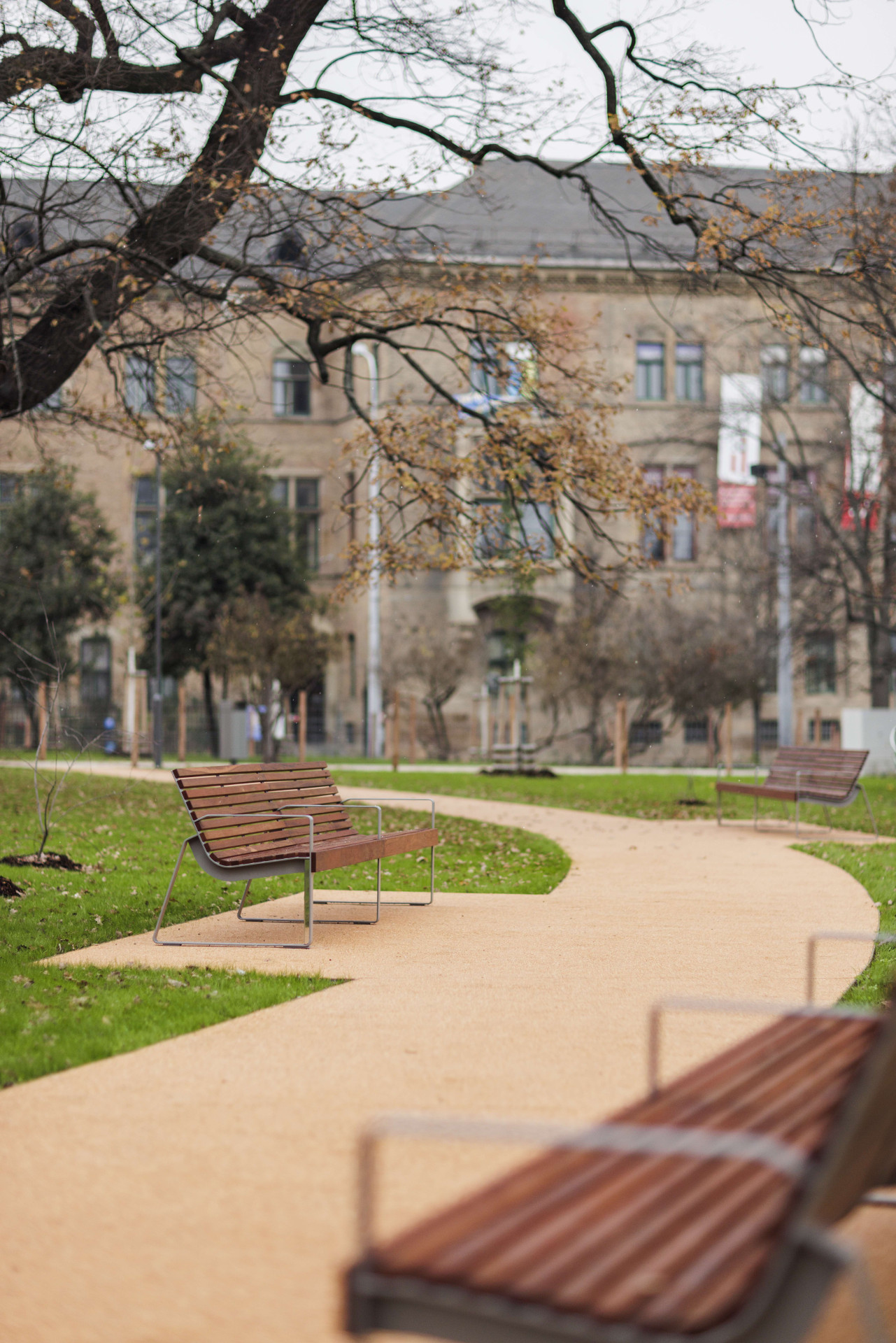 Moravské náměstí v Brně po revitalizaci doplnila lavička o délce 120 metrů