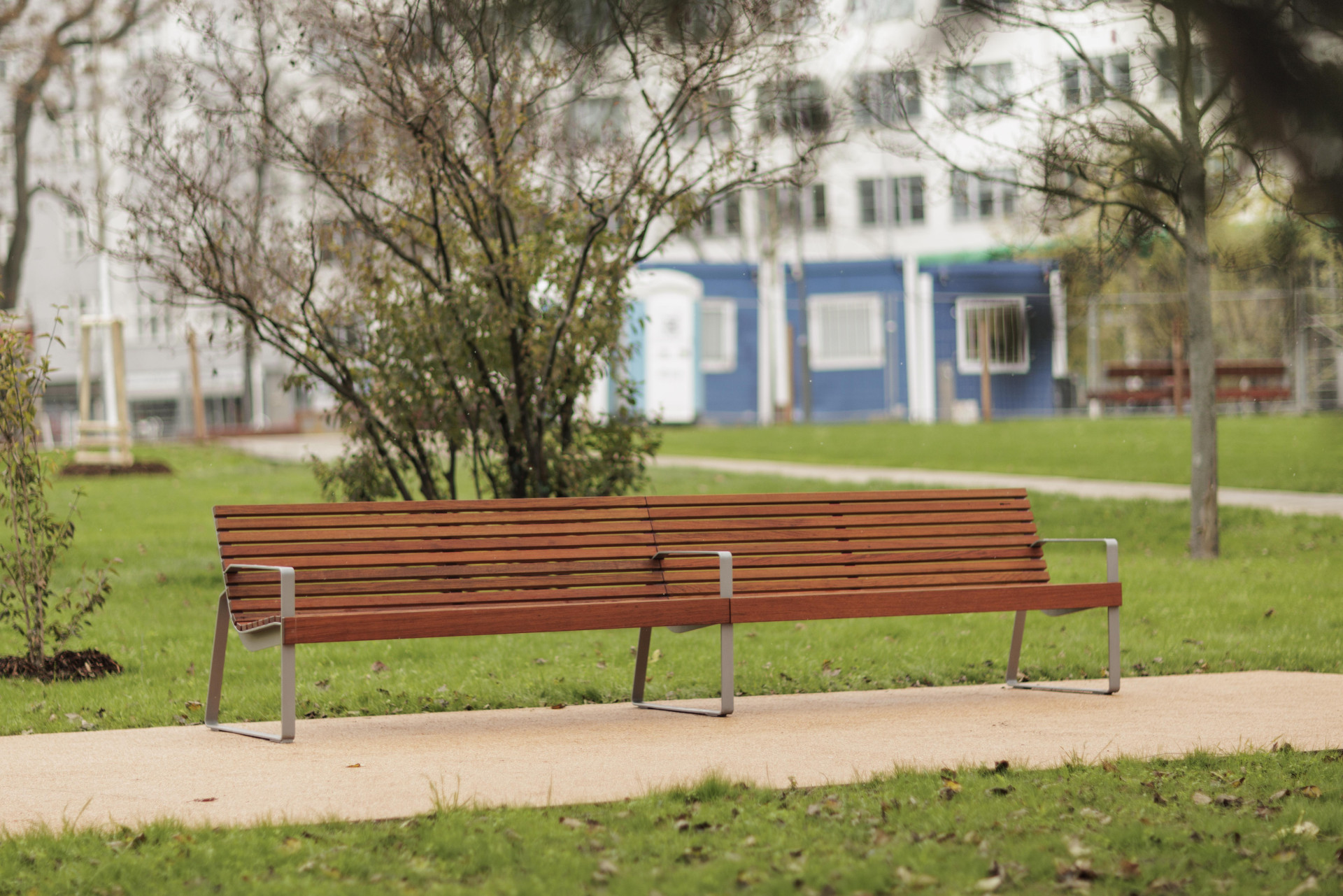 Eliptická lavička obkresluje centrální část parku tvořenou vodní plochou s proměnlivým charakterem: může ji tvořit vodní hladina, mlžné trysky nebo klasické fontány a může sloužit i k pořádání divadelních nebo hudebních představení. Centrální lavice je autorským dílem architektonické společnosti Consequence forma architects, konkrétními autory jsou Ing. arch. MArch. Janica Šipulová, Ing. arch. Martin Sládek, Ing. arch. Jan Schleider.
