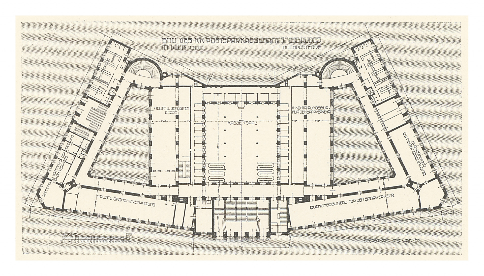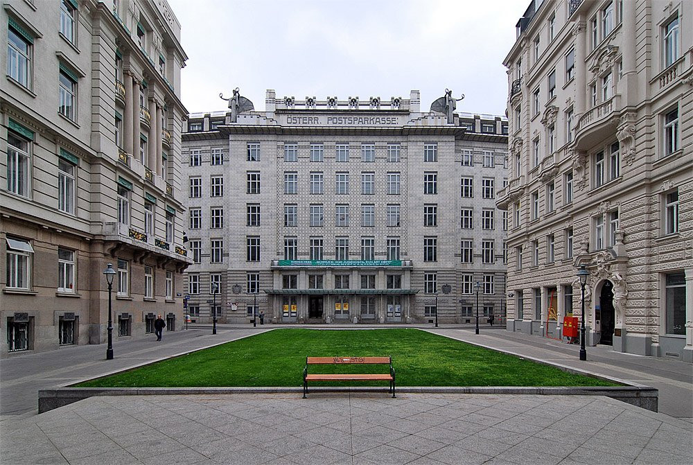 Výsostným příkladem jeho přístupu k architektuře je budova Poštovní spořitelny (1903) ve Vídni. Kompletně symetricky komponovaná stavba zabírá celý městský blok a skrývá v sobě trojlodní skleněnou halu s odhalenou průmyslovou konstrukcí.