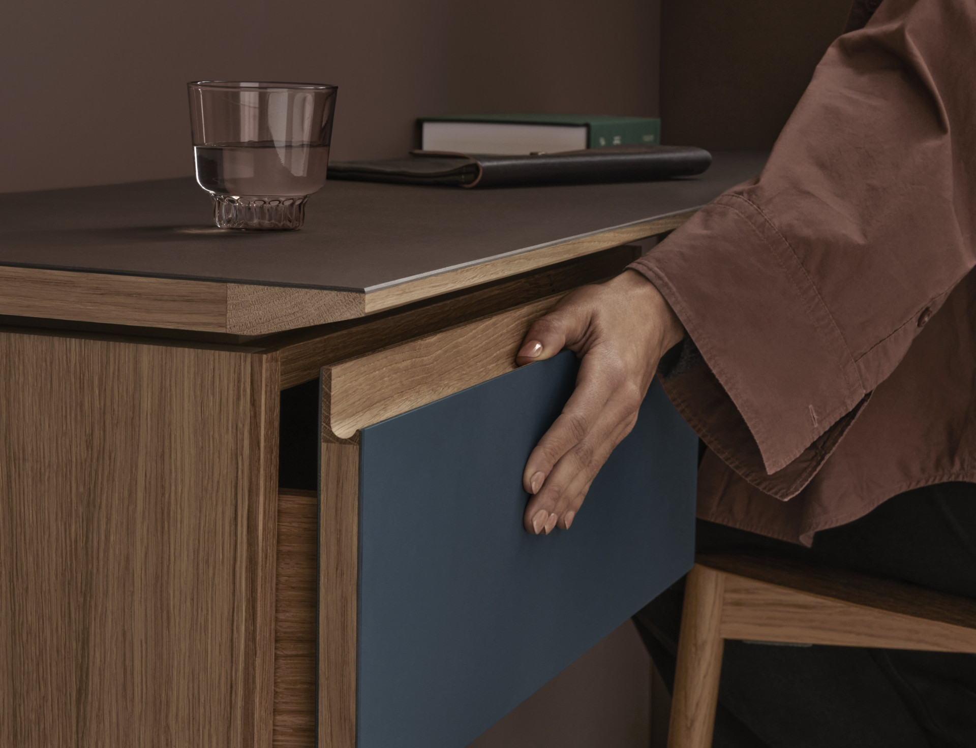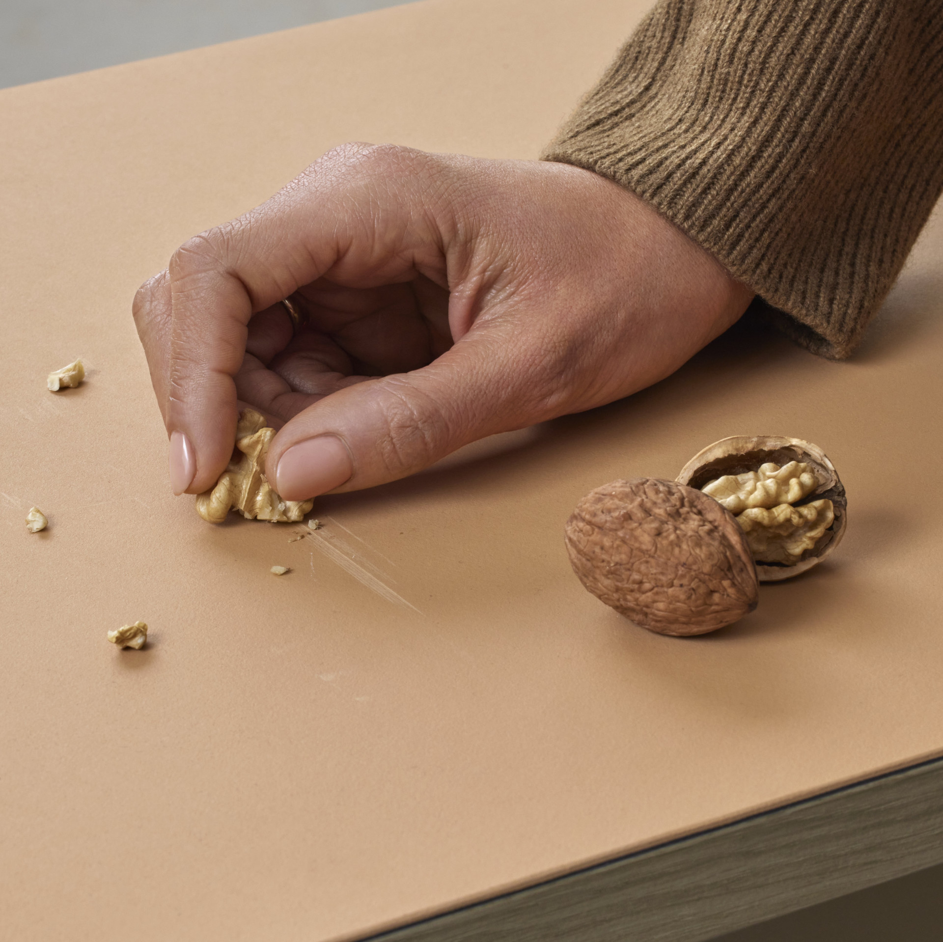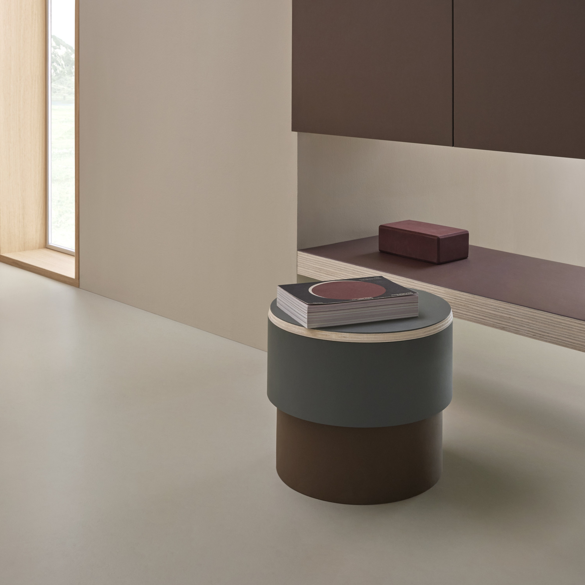Nábytkové linoleum od Forbo Flooring Systems je povrchový materiál určený k lepení na stoly, skříně či další nábytkové plochy. Díky matnému vzhledu, snadné opravitelnosti a přírodnímu složení vytváří elegantní a odolný povrch, za což letos získal prestižní ocenění Red Dot 2025 – Best of the Best.