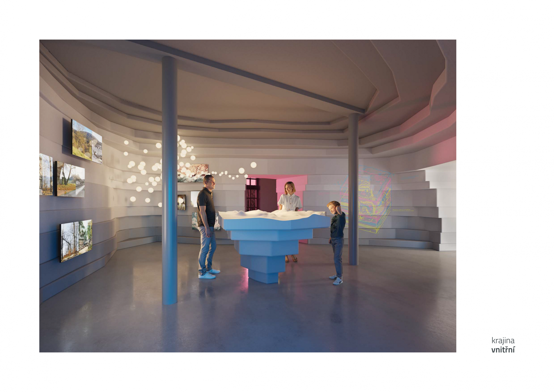 Krajina tradice, řemesel a hledání identity má jako symbol podstávkový dům, symbol spojení dvou národů Čechů a Němců. Krajina inspirace je koncipována jako univerzální prostor pro setkávání, projekce nebo výstavy.