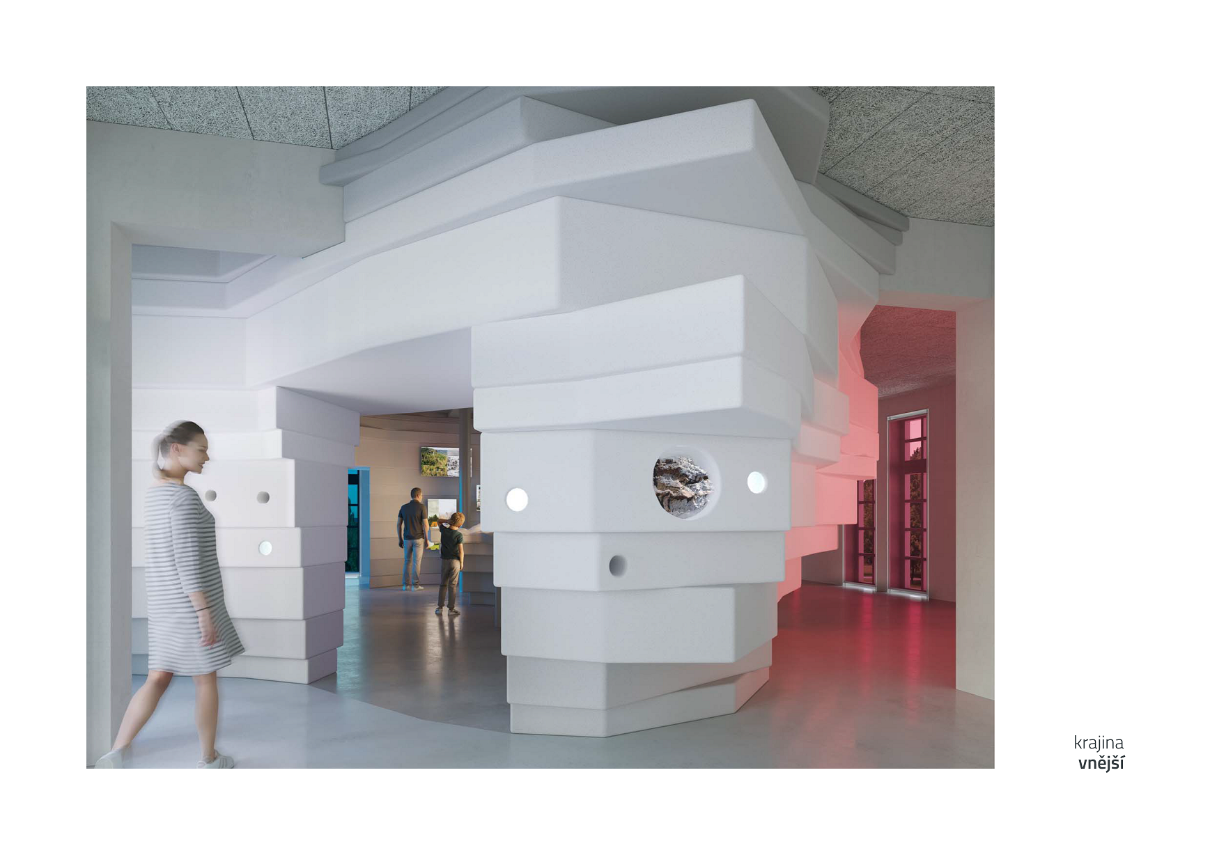 Vítězný koncept dělí expozici do několika částí a v každé z nich návštěvník prochází jinou atmosférou. Úvod do expozice tvoří Krajina zrozená z moře, která připomíná skalní náměstí a kde se návštěvníci seznámí s historií krajiny a její rozmanitostí.