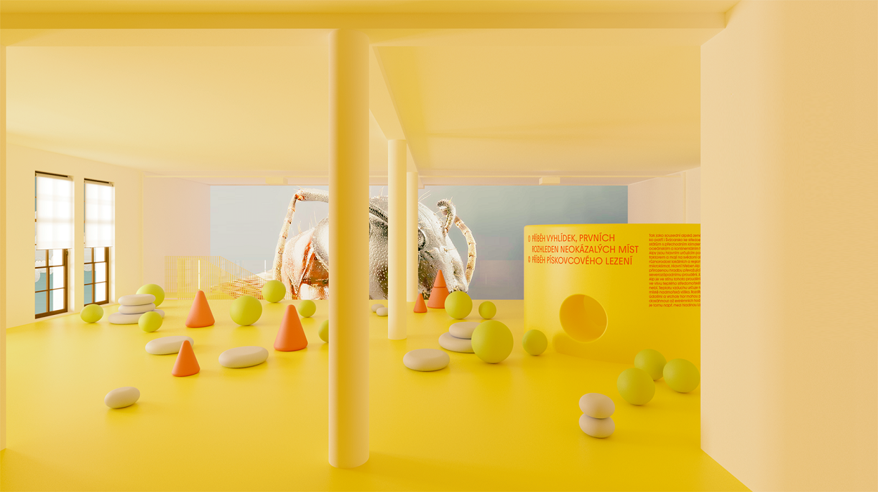 Expozice proniká i do veřejného prostoru. Autoři do okolí umístili herní prvek, altán, orientační totem nebo molo na blízkém rybníce.