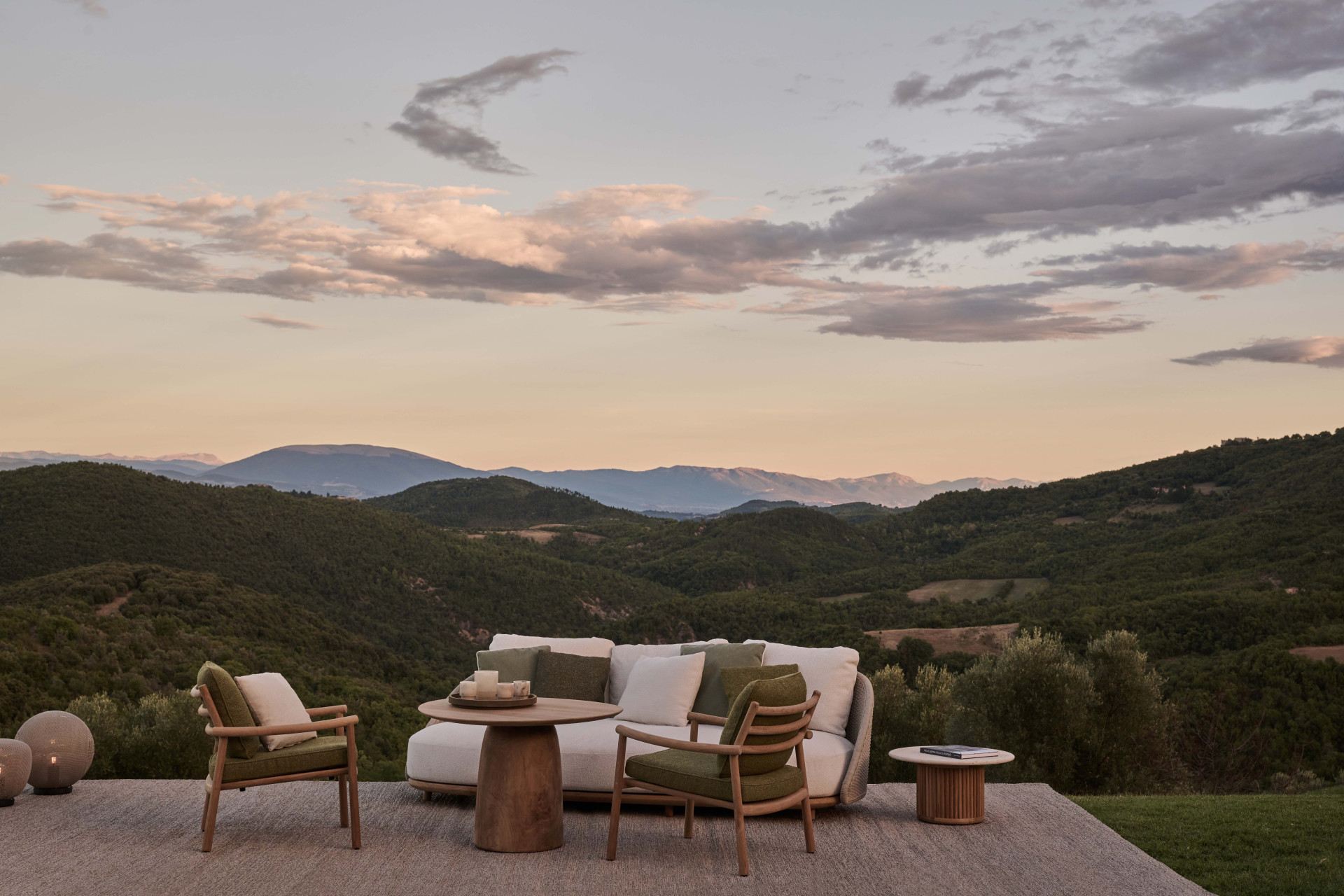 Kolekce Elio, navržená kanadskou designérskou firmou Yabu Pushelberg, přináší nový standard v komfortu venkovního sezení. S měkce zaoblenými liniemi a kokonovým efektem vytváří harmonický prostor pro relaxaci. Křesla a dvojsedáky s přírodní konstrukcí z teakového dřeva doplňuje inovativní ručně tkaný materiál Tricord®, který kombinuje pevnost a přirozenou měkkost. Nové pohovky, válendy a pufy dodávají kolekci ještě větší flexibilitu a umožňují přizpůsobení individuálním potřebám.