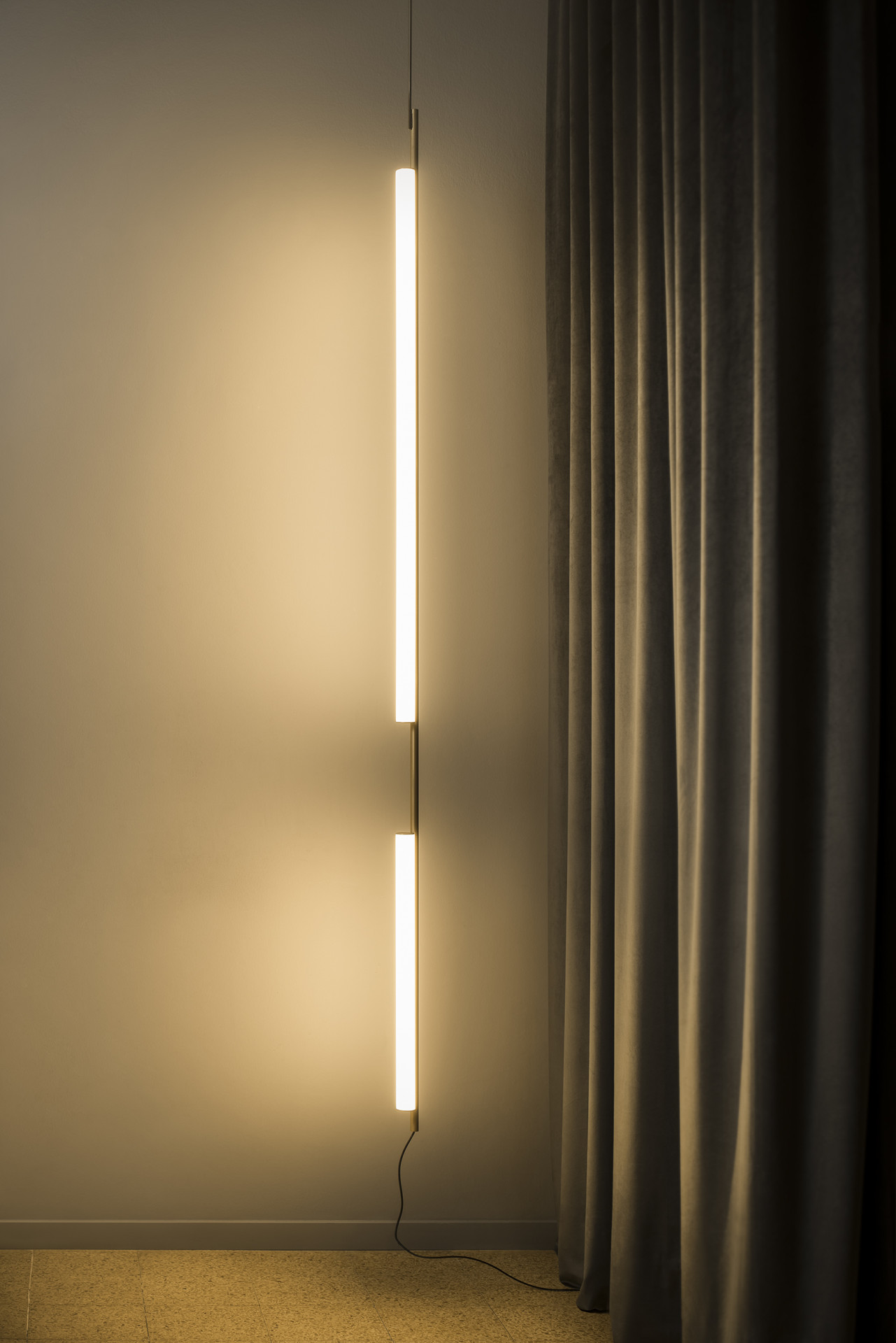 Ambrosia Vertical je nová světelná řada, kterou lze přeměnit na modulární systém, jež dokáže rozšířit nabízené osvětlení a přizpůsobit se tak jakémukoli prostoru. Design, který obnovuje a vrací se k nadčasovému trubicovému světlu a aktualizuje ho tak, aby jeho jednoduchá struktura a rozptýlené osvětlení dodaly krásu každému prostoru. Tato kolekce rozšiřuje jeho možnosti tím, že navrhuje změnu roviny světla z horizontální na vertikální. Lampa Ambrosia umožňuje vytvářet vertikální světelné kompozice, kombinovat různé velikosti a díky tomu osvětlit velké prostory, které vyplní světlem a teplem. Štíhlý design lampy dotváří dokonalou scénu v každé místnosti s maximálním světelným výrazem a minimalistickou strukturou.