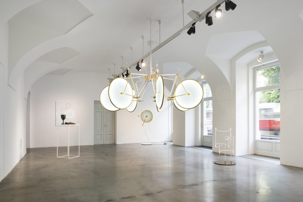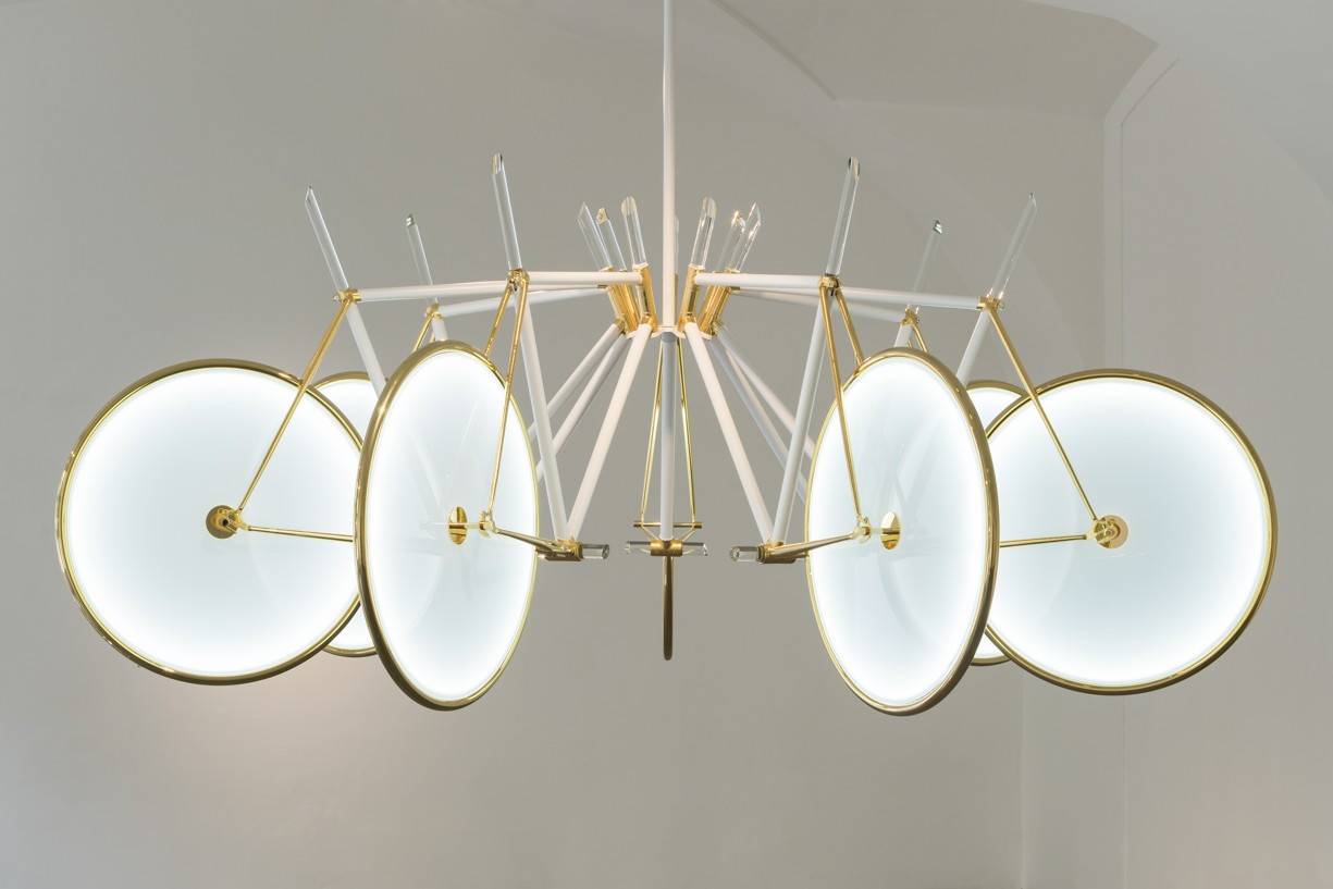 Na výstavě v pražském Kvalitáři vás čeká v první řadě impozantní závěsný pendant Armstrong, jehož váha činí kolem 100 kg. Dále budete moci vidět stolní lampy Marc a lampy Dear Marcel, jejichž tvarosloví vychází z fragmentů tradičních jízdních kol Favorit. Skalní fanoušky světové cyklisticky, ale i sklářského designu, bezpochyby zaujme i stojanová lampa Mario, kteránese dekorativní skleněný brus. Výstavu doplní i slavné jméno Fontana,soubor skleněných obrazů.