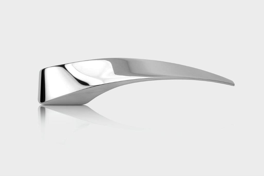 Pozná se to podle jejího tvaru, který vznikl pomocí počítačových programů. Já jsem přišla s nápadem na kliku s motivem přetočeného listu papíru. To, jak nakonec vypadá, je ale výsledek digitálního tvarování. Programy vyhodnocovaly například i její váhu. Ve své architektonické praxi často navrhuji větší prostory, a tak mám tendenci uvažovat také o větších klikách. V takových případech se ale bohužel bojuje s tím, aby nebyly příliš těžké a nesvěšovaly se. Je tedy potřeba zachovat určité váhové parametry.