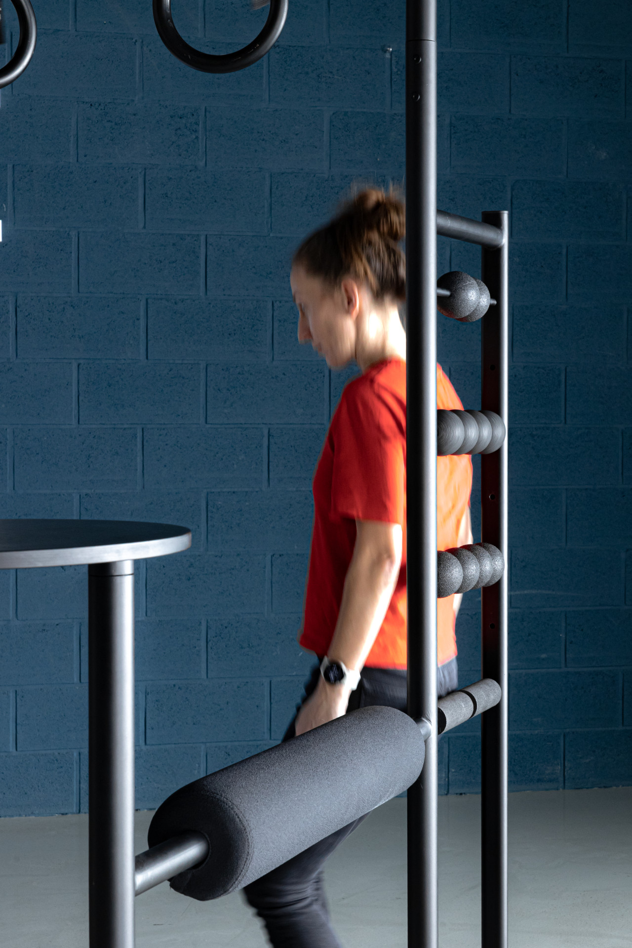 Kolekce přináší hned tři nové typy kancelářského nábytku. Jejím srdcem je hybridní prvek Olymp, který nabízí prostor pro zavěšení, protažení a uvolnění unavených svalů. Konstrukčně vychází z pevného ocelového rámu doplněného o čalouněné prvky a odolné úchopy, které umožňují bezpečné krátké cvičení během pracovního dne. Tvarově působí jako subtilní architektonický objekt – nepůsobí jako sportovní náčiní, ale jako promyšlený solitér, který přirozeně zapadá do moderní kanceláře.