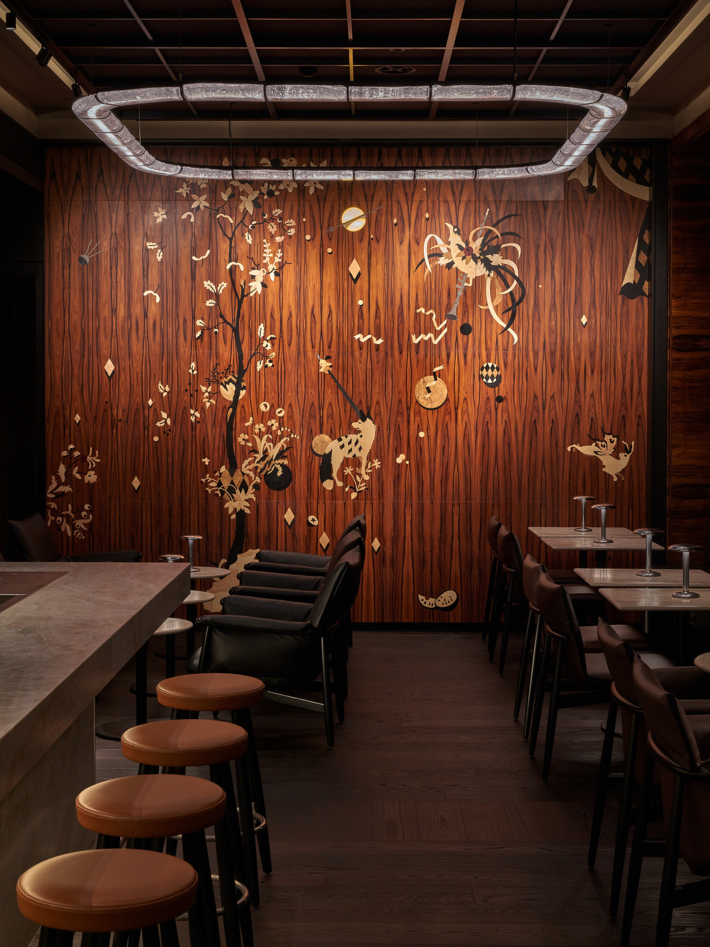 A ještě jedna kategorie se týkala interiéru – překvapivě to byla ilustrace. Michal Bačák totiž získal cenu ilustrátor roku za převedení svých kreseb do techniky intarzie pro bar Forbína; ze vzácných dřev ho realizovalo studio zeitgeist.limited. „Nastudováním a zdařilým ovládnutím metody intarzie ze vzácných dřevin Michal Bačák prokázal, že kategorie ilustrace nekončí na papíře. Intarzie propojuje naráz několik řemesel, která vyžadují preciznost a plánování. Nejde o rychlou skicu, která by dynamicky zachytila umělecký rukopis,“ uvedla Emma Hanzlíková, teoretička umění, kurátorka a členka Odborné poroty kategorie Ilustrátor/ka roku.