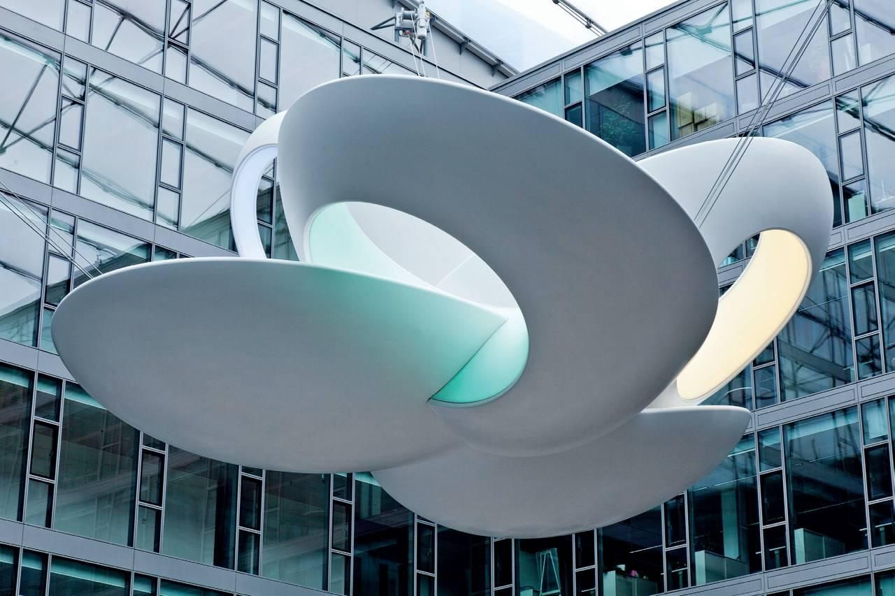 Úspešne vyriešiť náplň, funkčné využitie prázdneho objemu skoro 50 000 m3 výtvarnými komponentmi je veľká výzva pre architektov i výtvarníkov. Pohľad na realizované výtvarné dielo i funkčná náplň v dispozičnom využití dávajú presvedčivú odpoveď správnemu rozhodnutiu manažmentu i porote. Silný emocionálny zážitok zo svietiaceho monumentu zaveseného v priestore átria je naozaj pozitívny. Vzhľadom na pôvodnú transparentnú koncepciu presklenia vnútorných i vonkajších stien pracovísk je dielo viditeľné z mnohých pozícií pracovísk. Jeho oblé tvary sú vhodným kontrastom kubistickým tvarom átria. Svietiace časti vnútorných plôch objektu hmotu vyľahčujú a meniaca sa farba osvetlenia vytvára neustále nové možnosti pôsobenia. Symbol kvetu je zhotovený ako vyľahčená nosná kostra a ľahký obal z epoxidovej živice. Dielo je konštruované podľa presných statických posudkov a výpočtov, v priestore je flexibilne zavesené pomocou oceľových lán v troch bodoch k nosnej konštrukcii objektu.