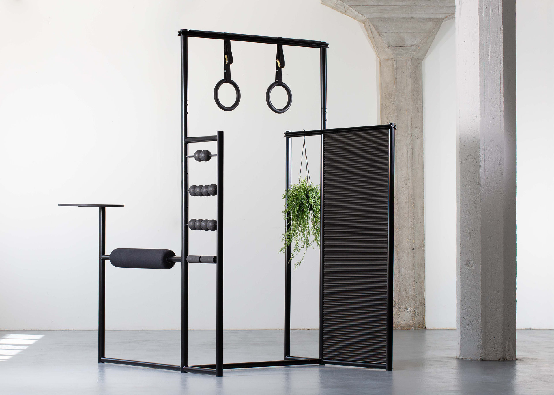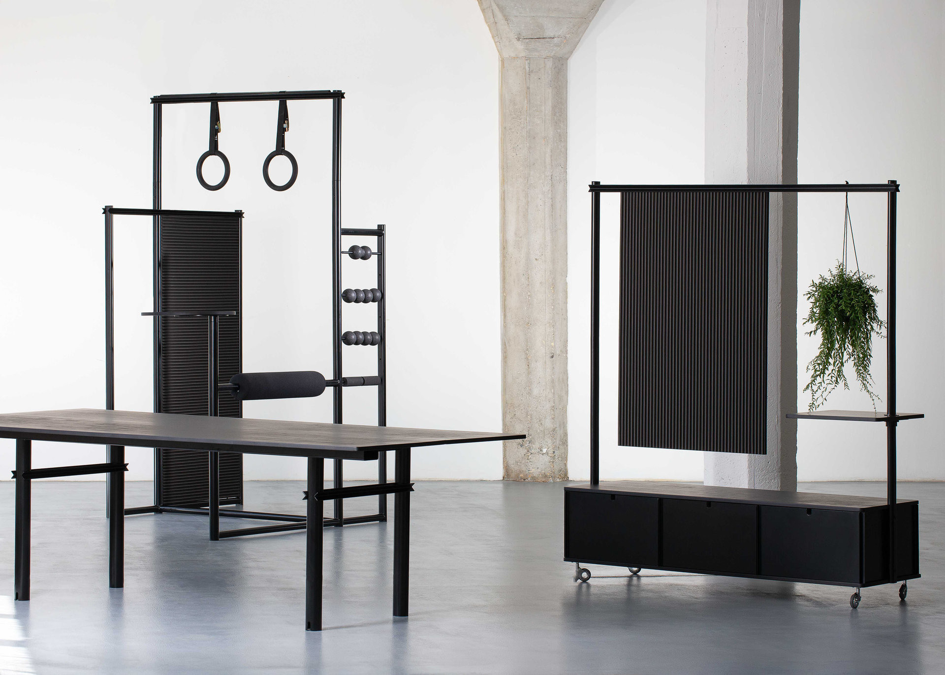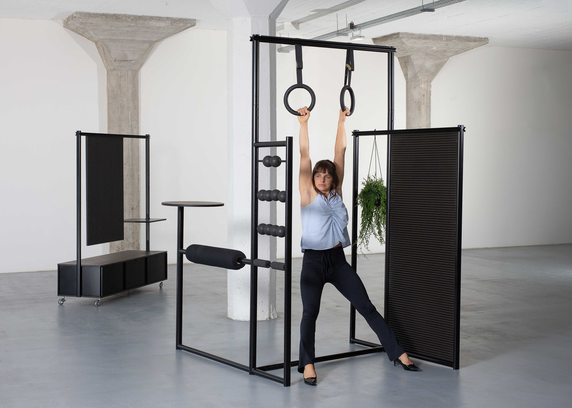 Kolekce přináší hned tři nové typy kancelářského nábytku. Jejím srdcem je hybridní prvek Olymp, který nabízí prostor pro zavěšení, protažení a uvolnění unavených svalů. Konstrukčně vychází z pevného ocelového rámu doplněného o čalouněné prvky a odolné úchopy, které umožňují bezpečné krátké cvičení během pracovního dne. Tvarově působí jako subtilní architektonický objekt – nepůsobí jako sportovní náčiní, ale jako promyšlený solitér, který přirozeně zapadá do moderní kanceláře.