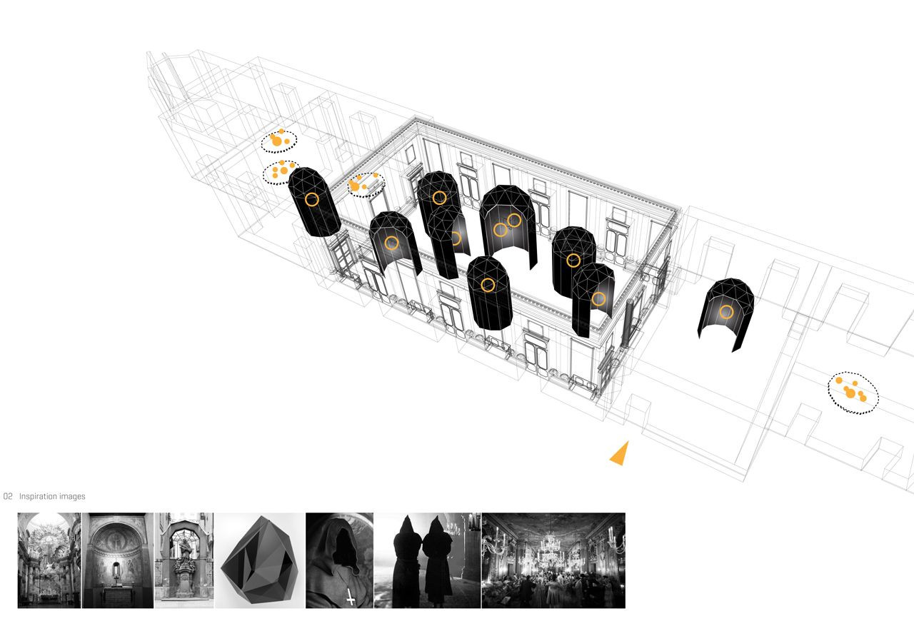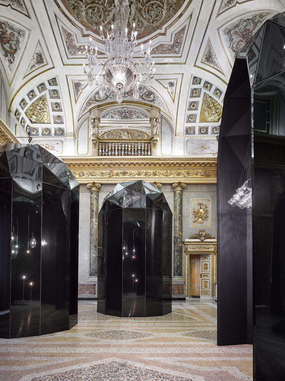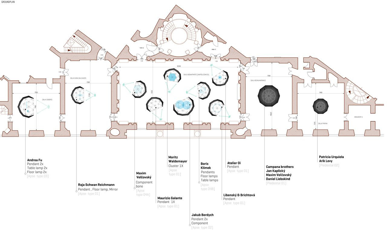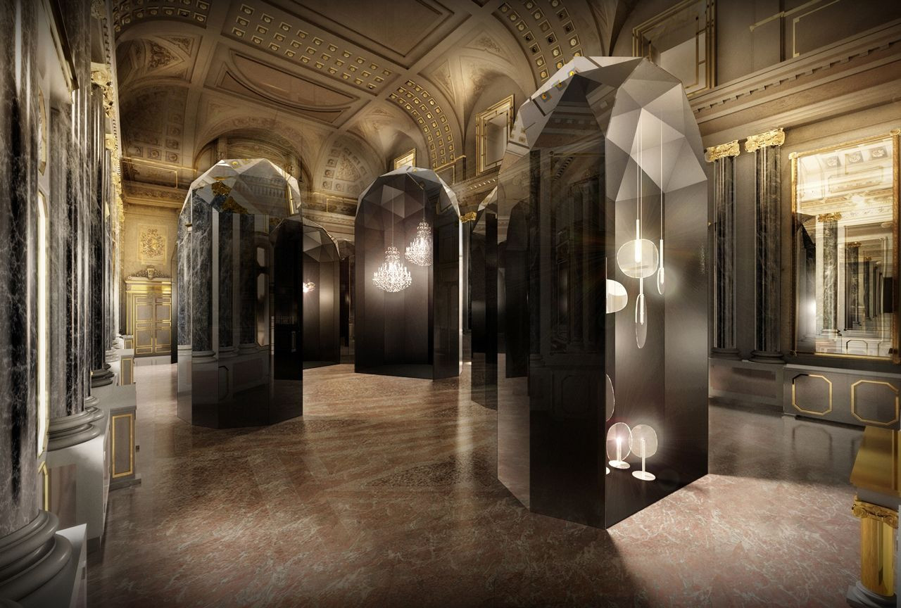 Návrh volně navazuje na intenzivní tvarosloví barokně-klasicistních prostor Paláce Serbollini, určených výhradně pro expozici svítidel společnosti Lasvit během milánského veletrhu Salone del Mobile 2016.