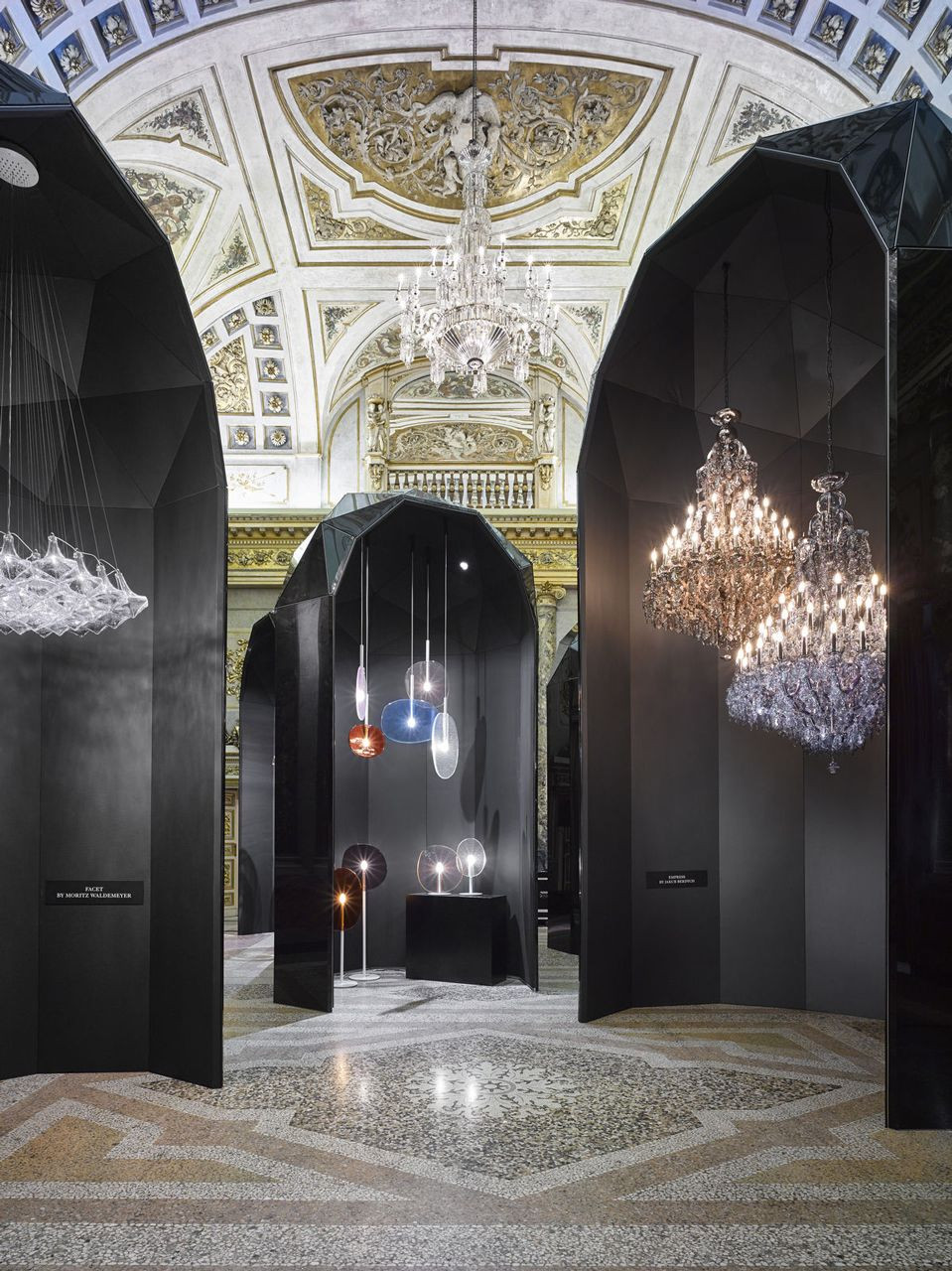 Studio pha navrhlo pro firmu Lasvit originální výstavní stánek – ten svým tvarem evokuje broušené sklo černé barvy, zároveň však skrze jeho stěny prosvítají jednotlivá svítidla. Výsledný dojem nás přenáší na opulentní bál v barokním sále milánského Paláce Serbollini… Chcete si zatančit?